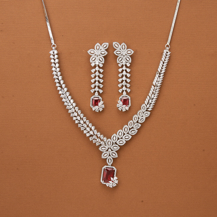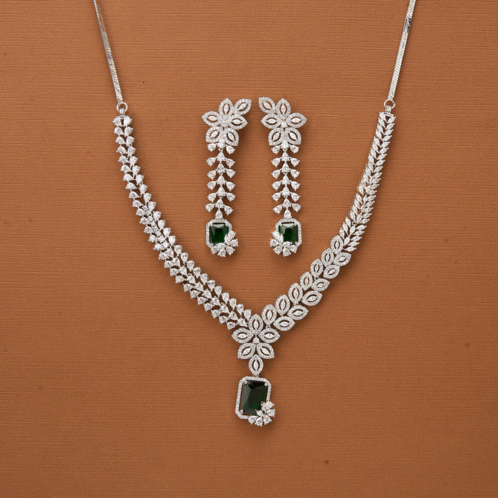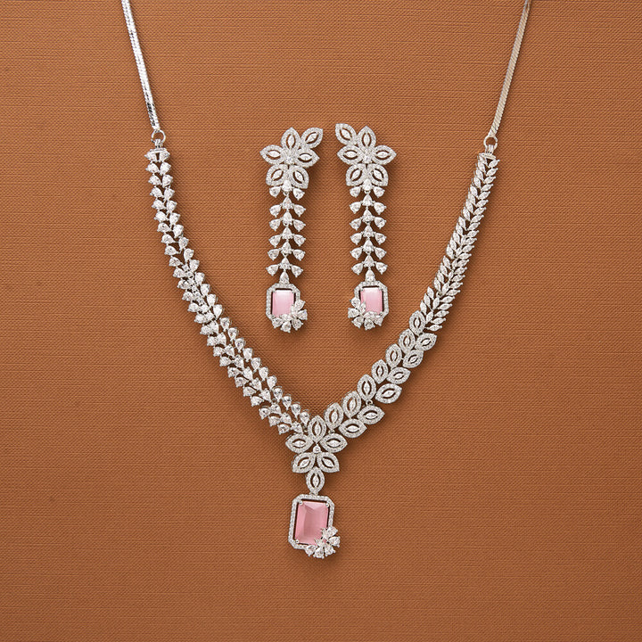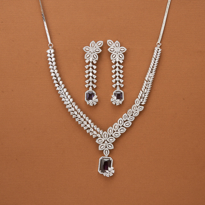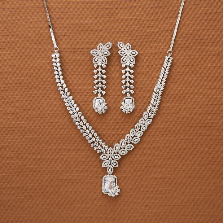 435379 Cubic Zirconia Classic Necklace With Rhodium Plating