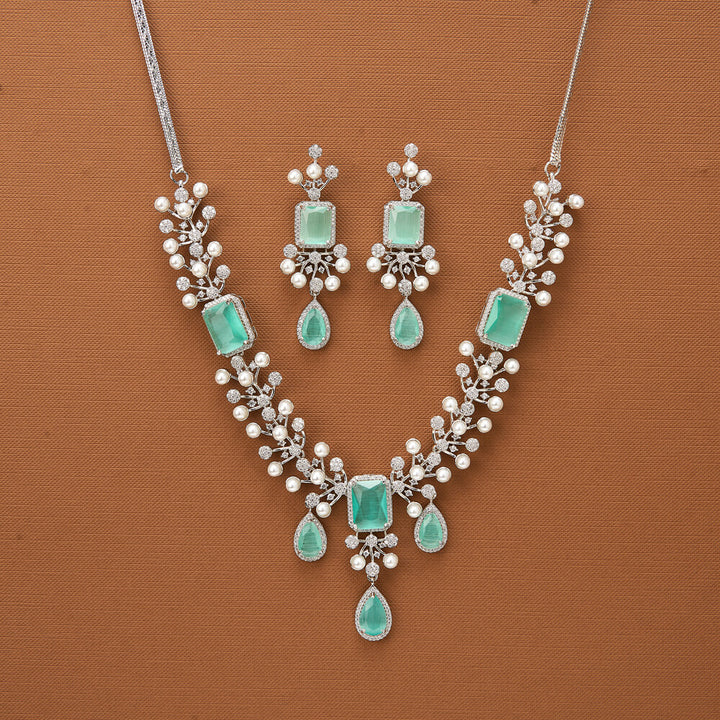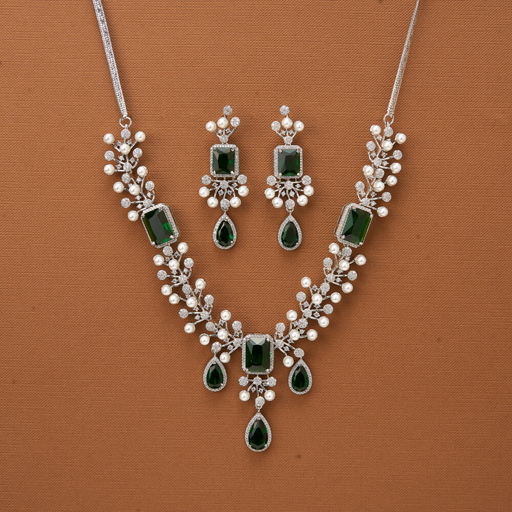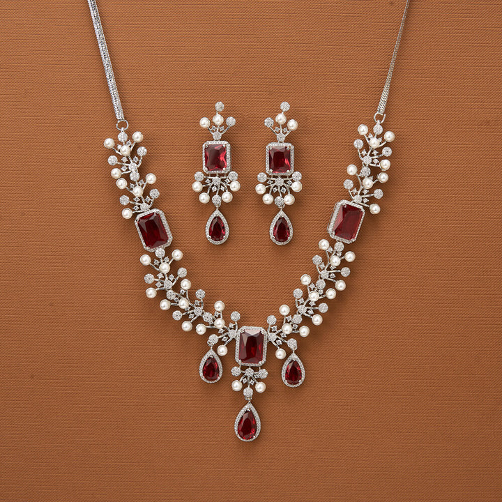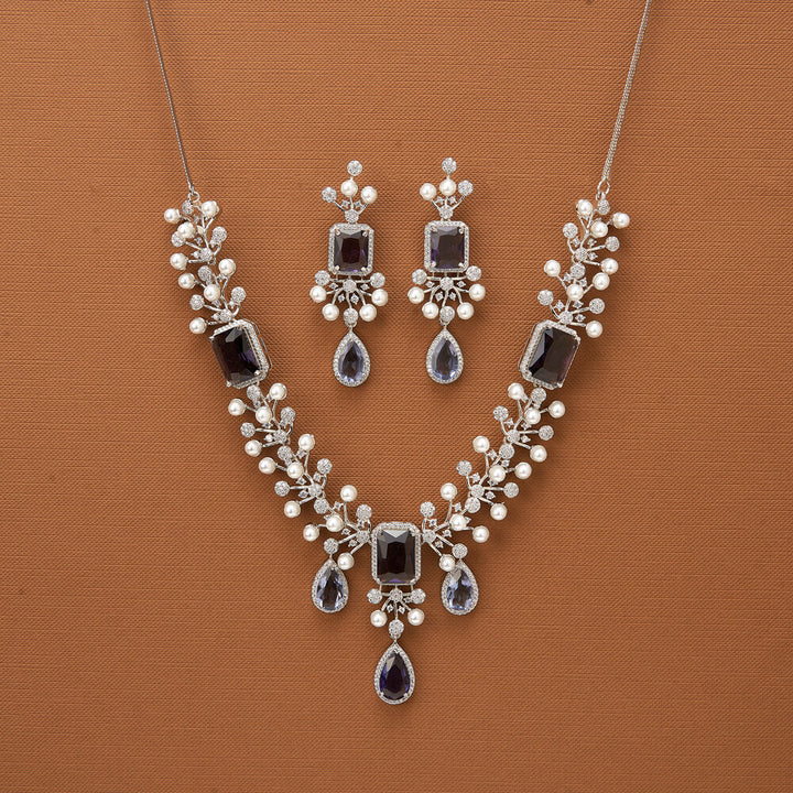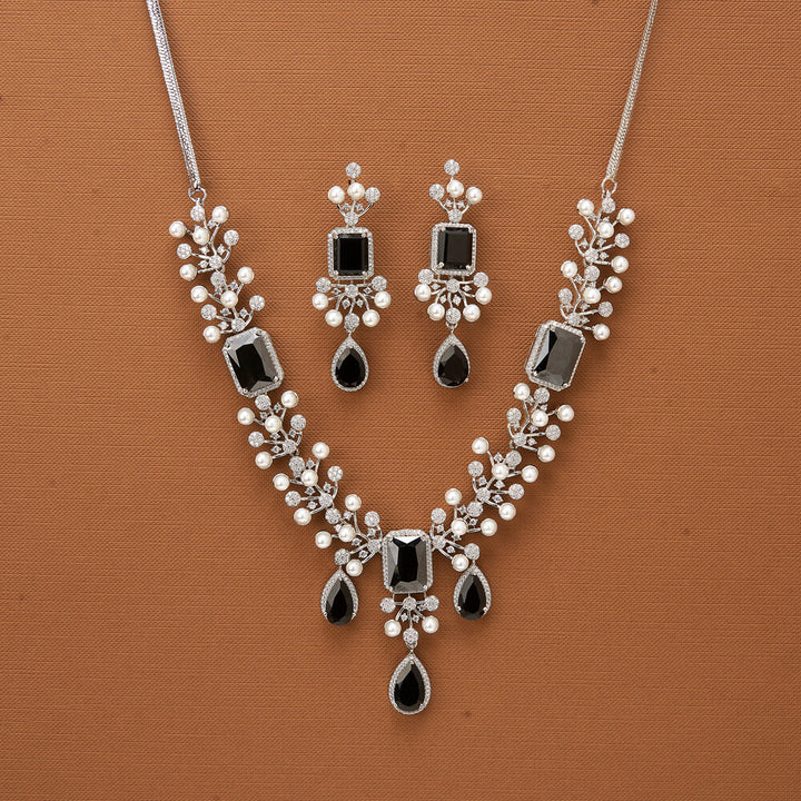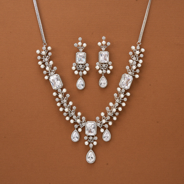 435690 Cubic Zirconia Classic Necklace With Rhodium Plating