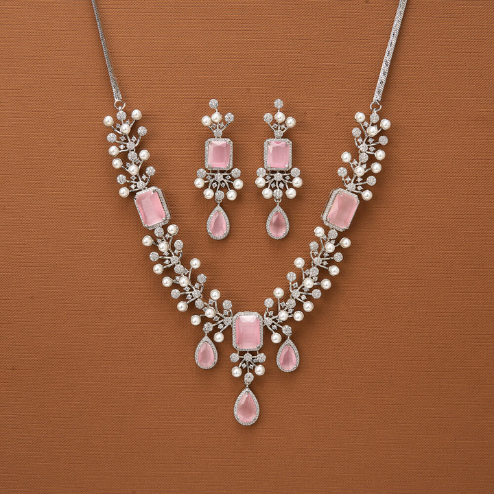 Weight: 71.0 Grams, Regular Size And Adjustable,Pearl Necklace,American Diamond Necklace Set