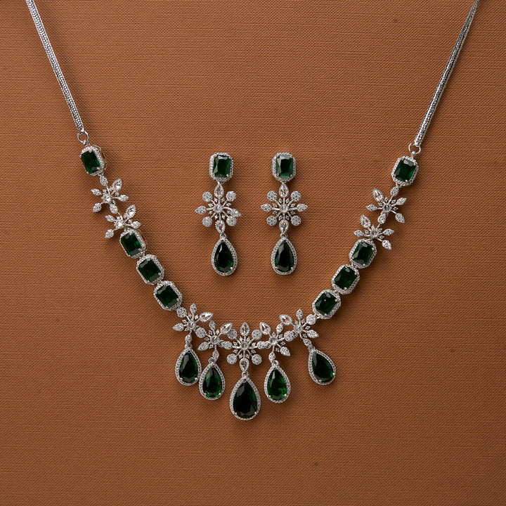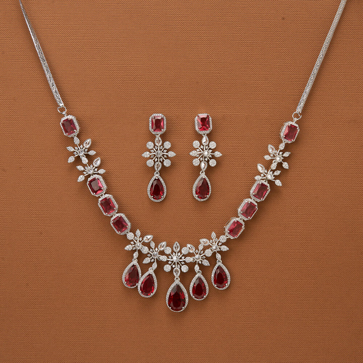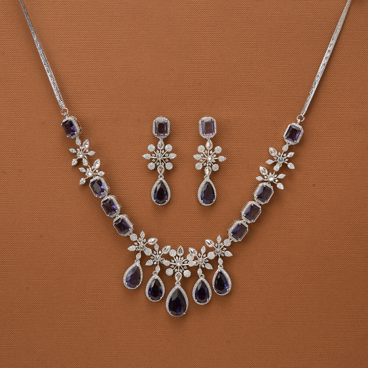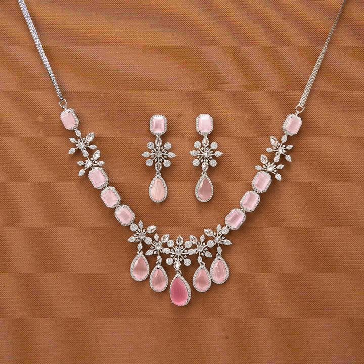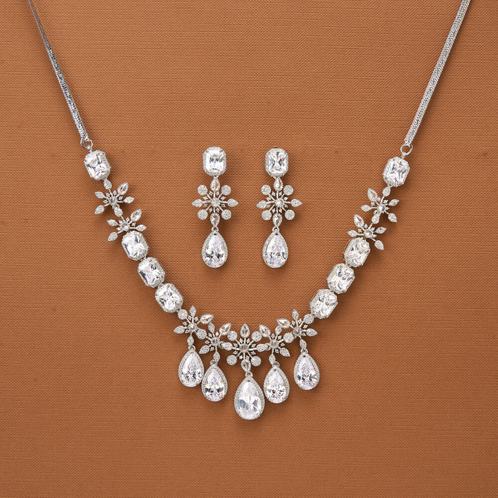435691 Cubic Zirconia Classic Necklace With Rhodium Plating