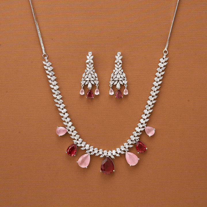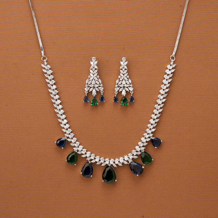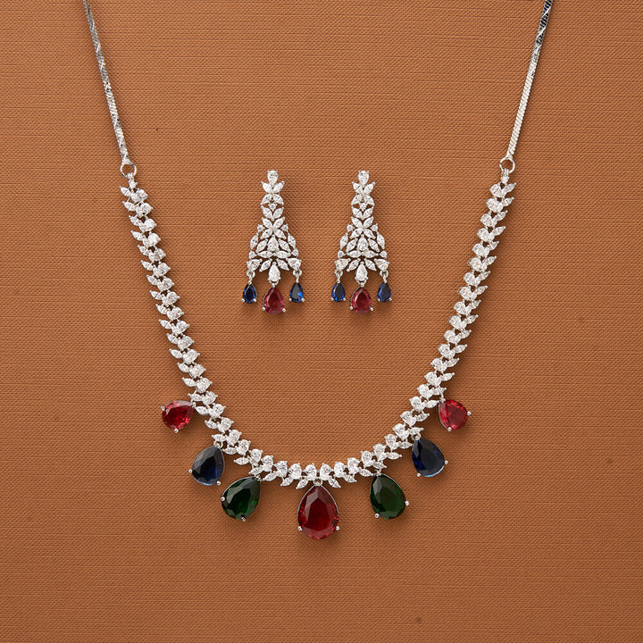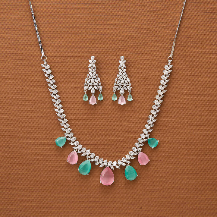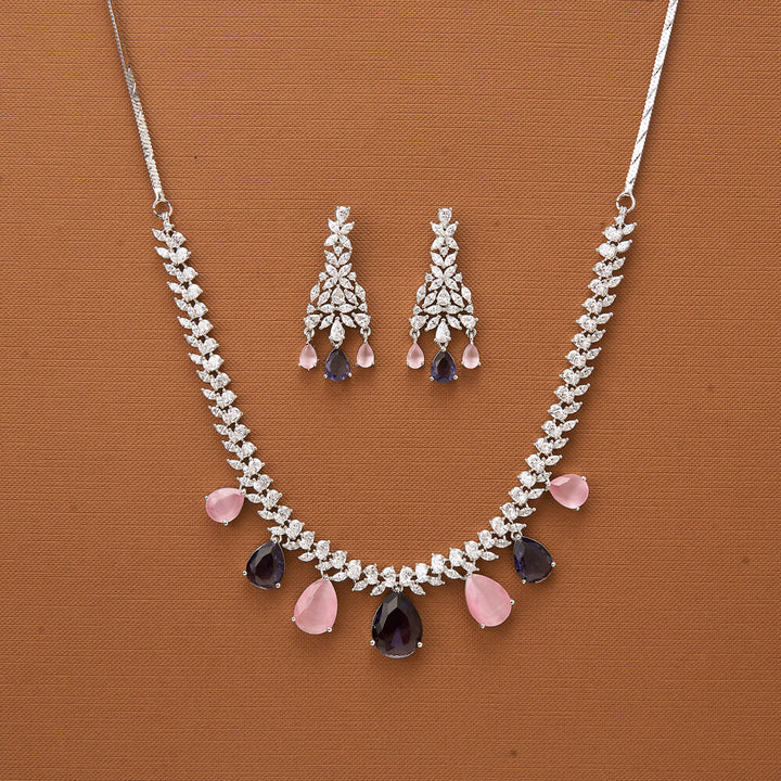 Weight: 43.0 Grams, Regular Size And Adjustable,Handmade Design,American Diamond Necklace Set