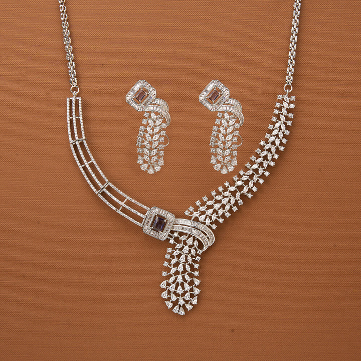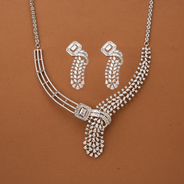 436810 Cubic Zirconia Classic Necklace With Rhodium Plating