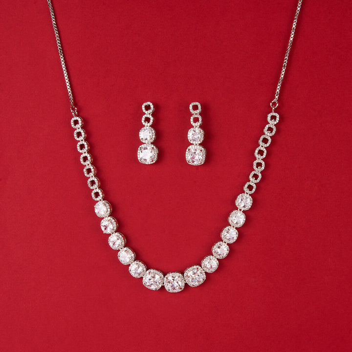 437882 Cubic Zirconia Classic Necklace With Rhodium Plating