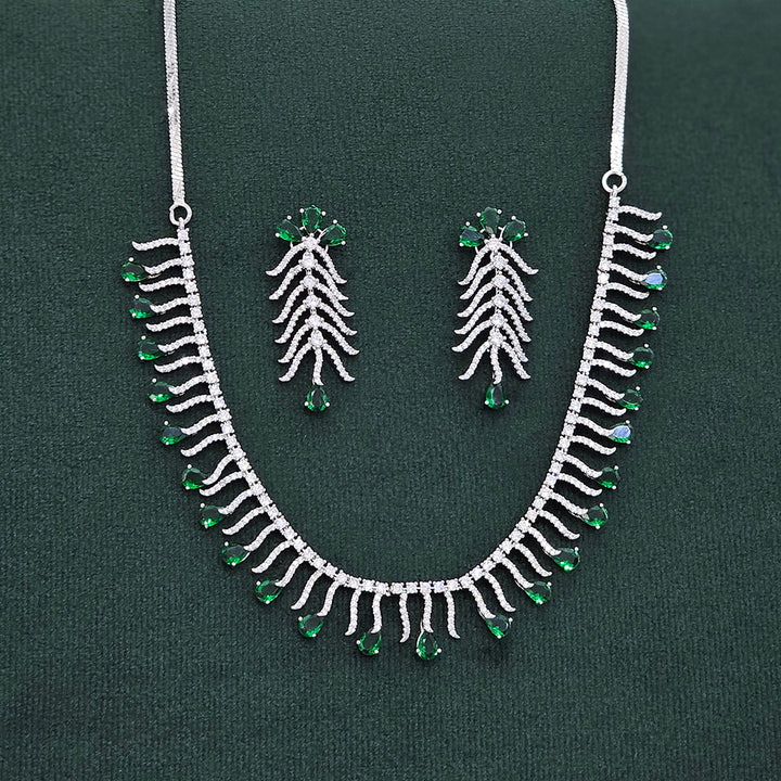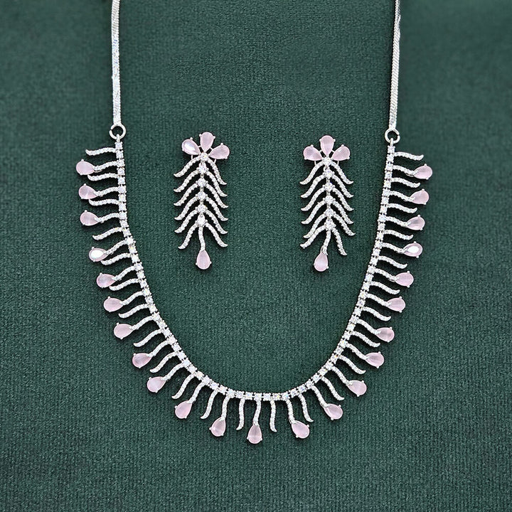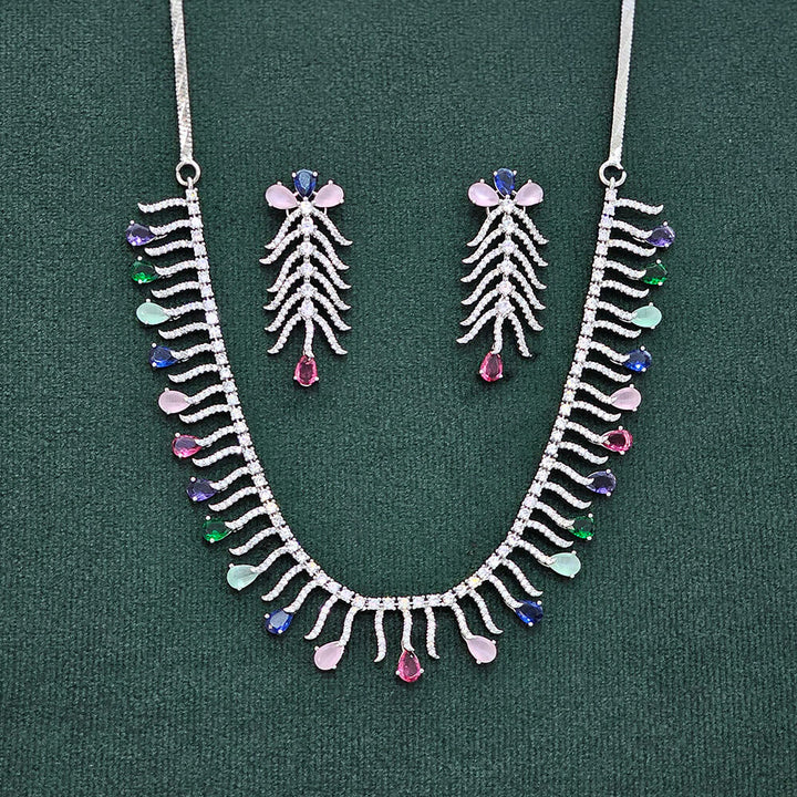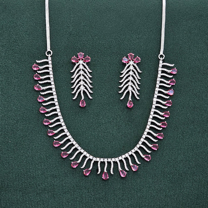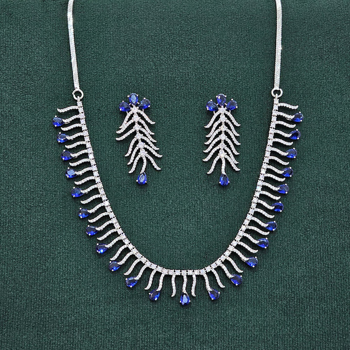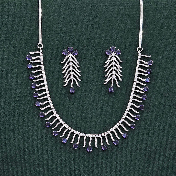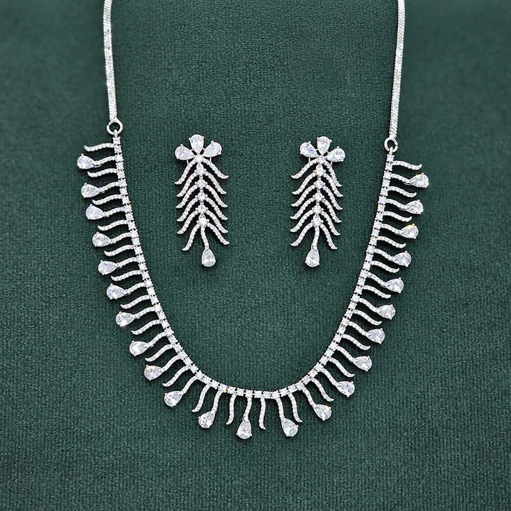 Weight: 32.0 Grams, Earring Height = 42 mm || Width = 16 mm,Regular Size And Adjustable,Latest Design,Rhodium Plating,American Diamond Necklace Set