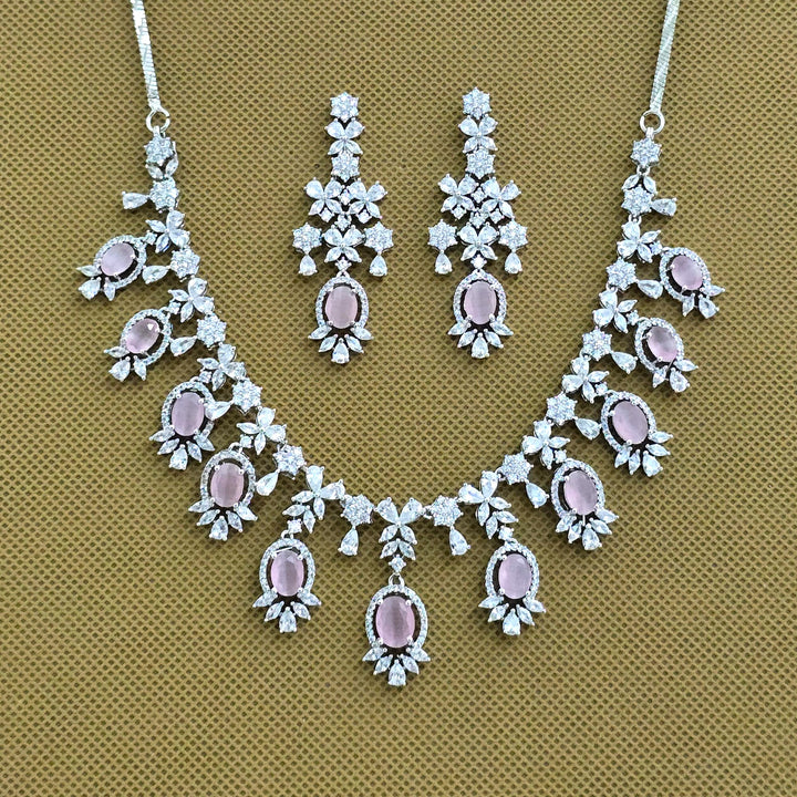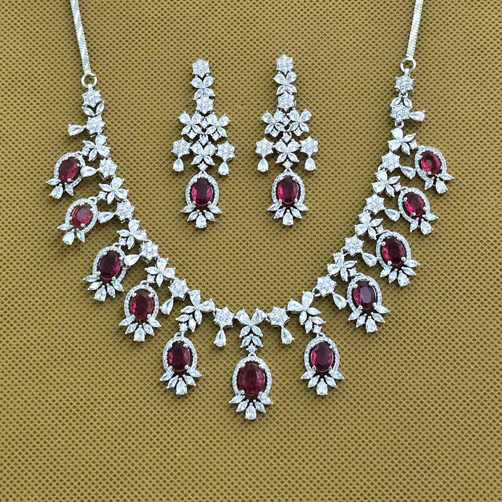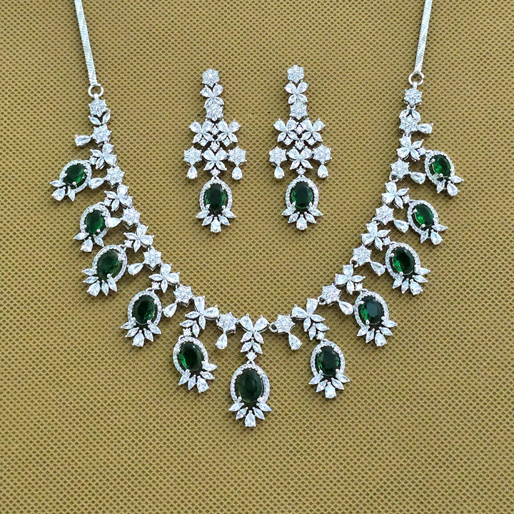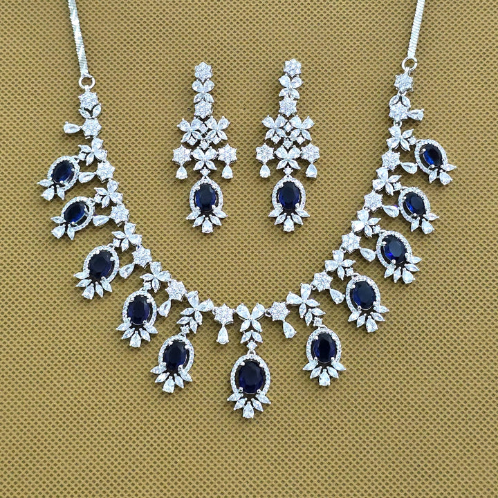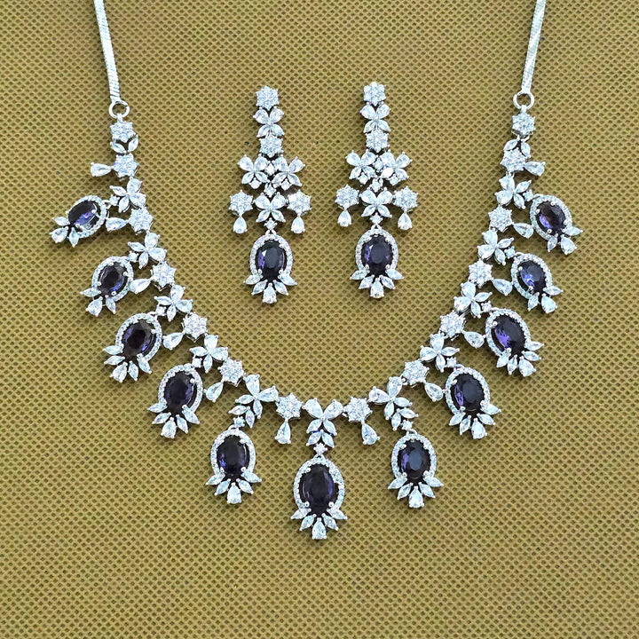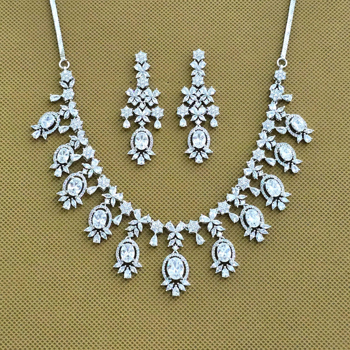 Weight: 53.0 Grams, Earring Height = 52 mm || Width = 20 mm,Regular Size And Adjustable,Latest Design,Rhodium Plating,American Diamond Necklace Set