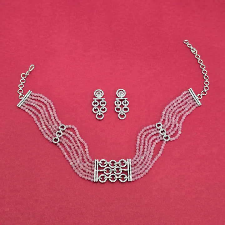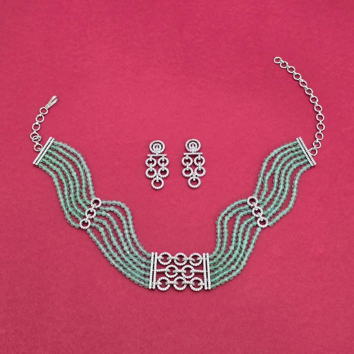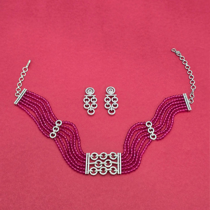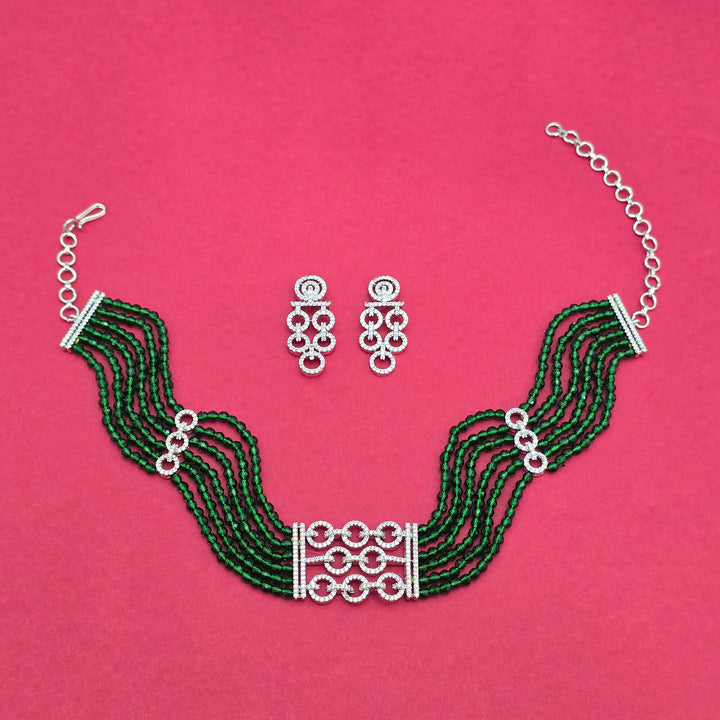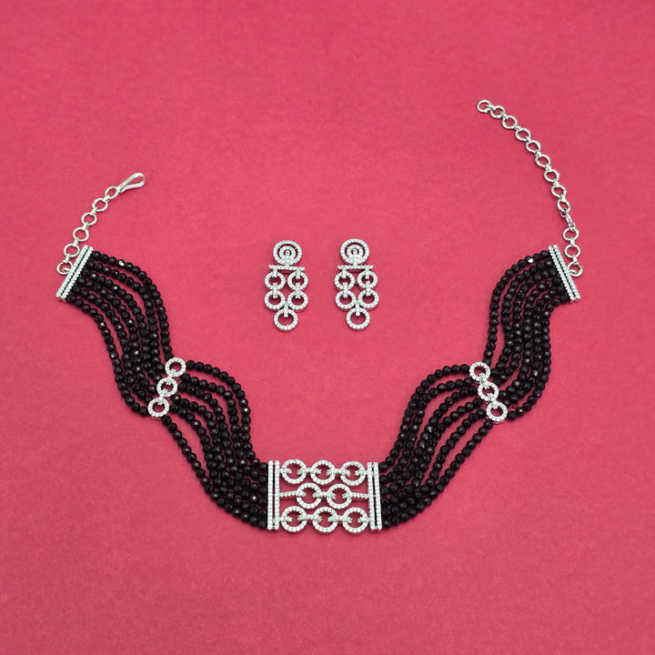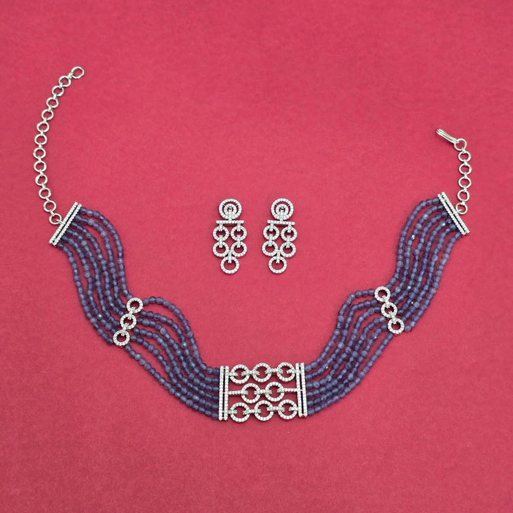 Weight: 40.0 Grams, Earring Height = 33 mm || Width = 15 mm,Regular Size And Adjustable,Handmade Design,Rhodium Plating,American Diamond Necklace Set