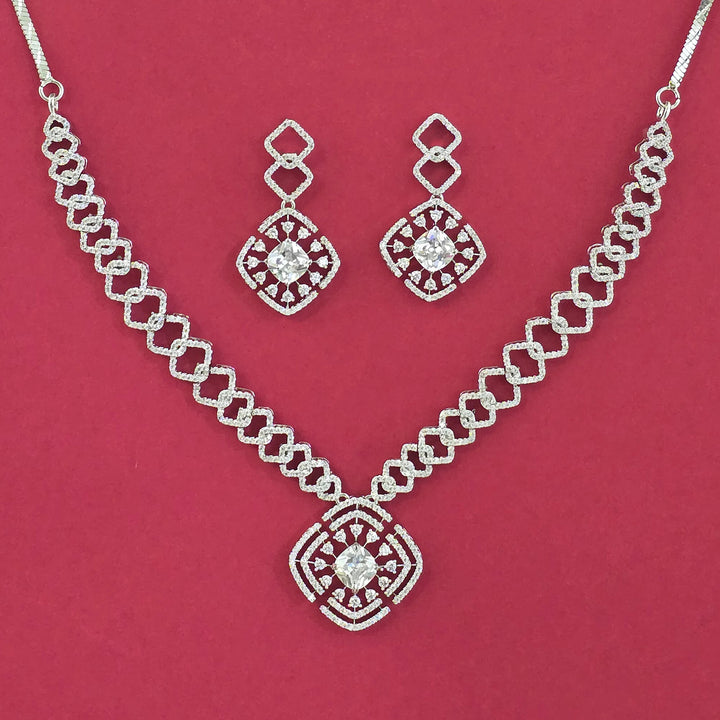 441406 Cubic Zirconia Classic Necklace With Rhodium Plating