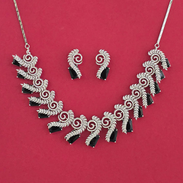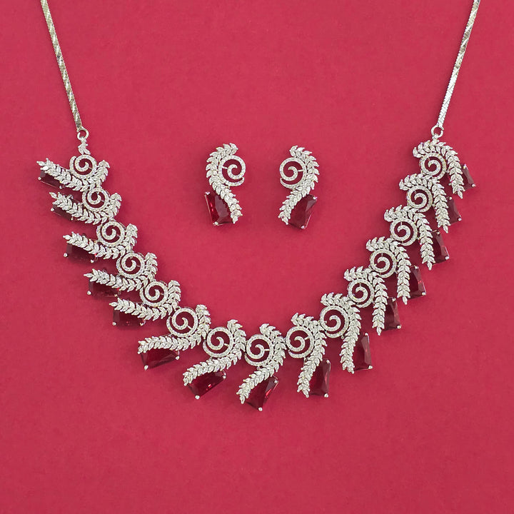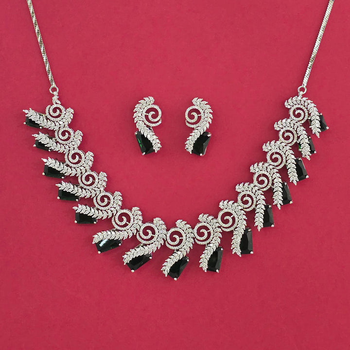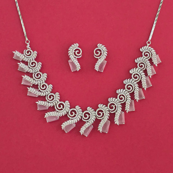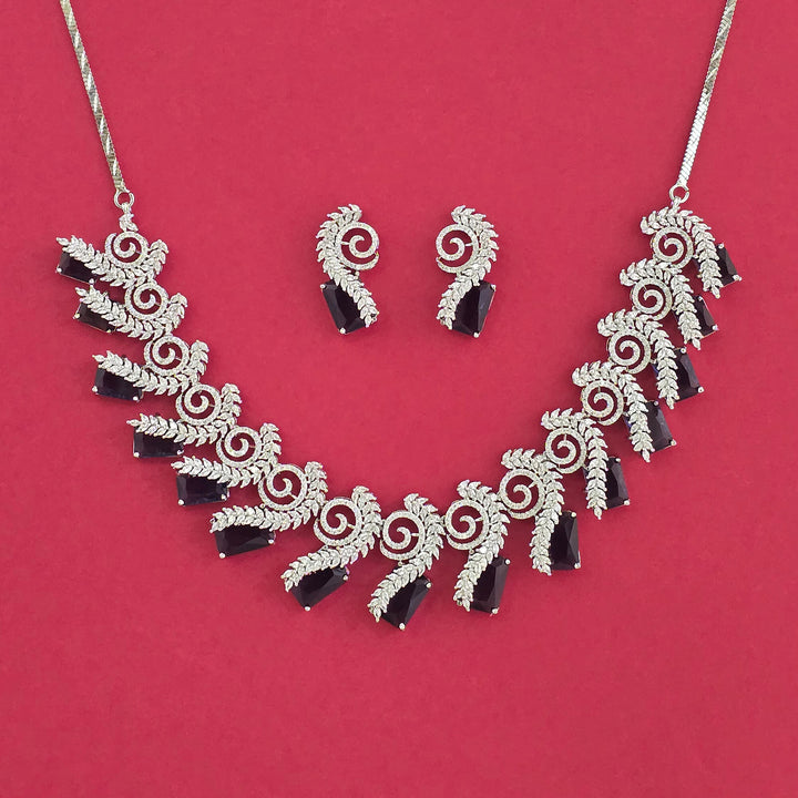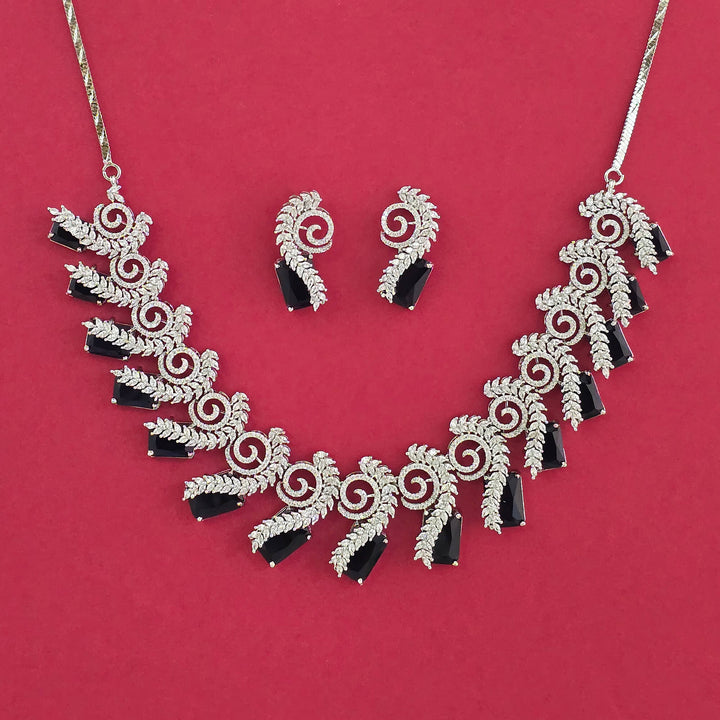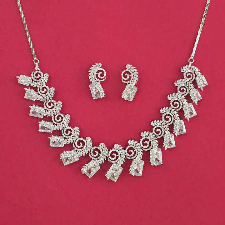 Weight: 82.0 Grams, Earring Height = 35 mm || Width = 15 mm,Regular Size 12 Inches With Adjustable Option,Rhodium Plating,American Diamond Necklace Set