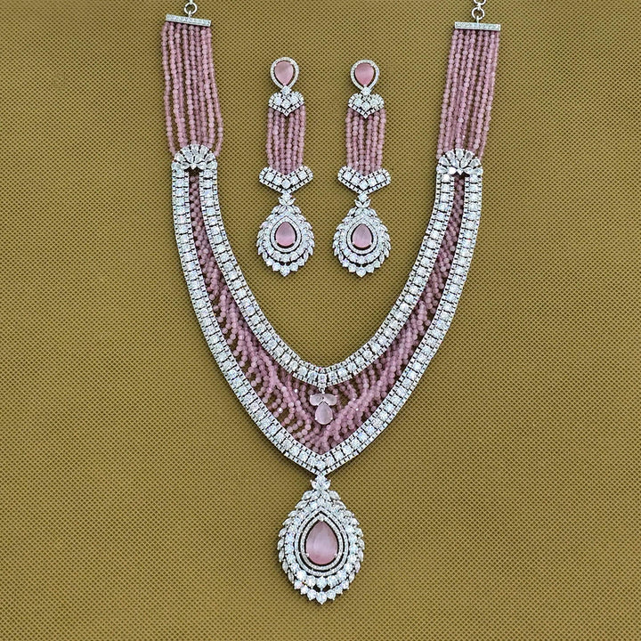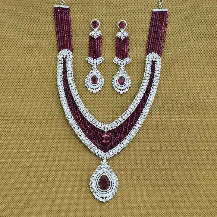 Weight: 118.0 Grams, Length = 16 Inch,Earring Height = 94 mm || Width = 25 mm,Bandhai Necklace,Rhodium Plating,American Diamond Necklace Set