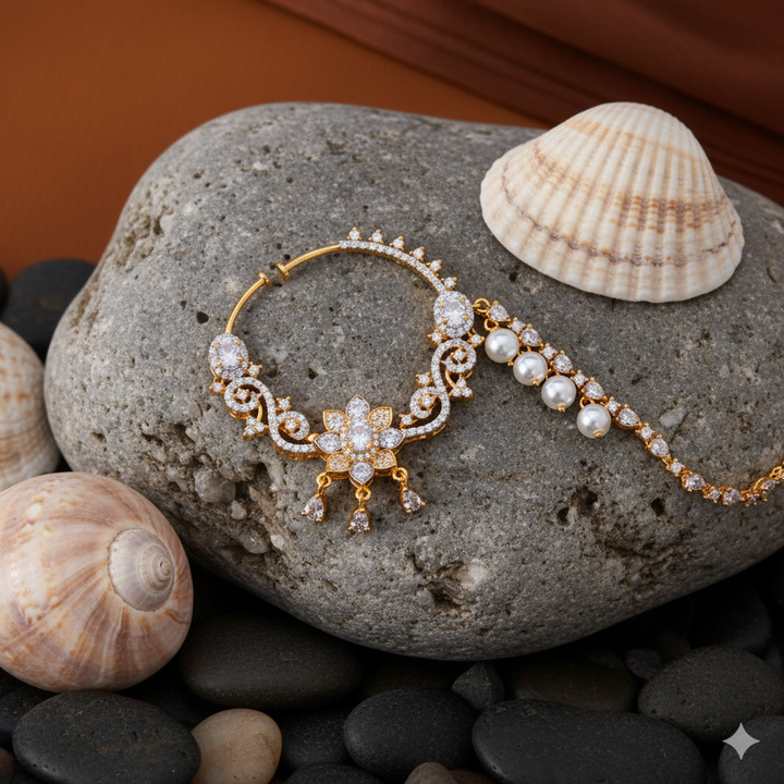 Weight: 16.0 Grams, Height = 57 mm || Width = 45 mm,Delicate Design,American Diamond Nose Ring