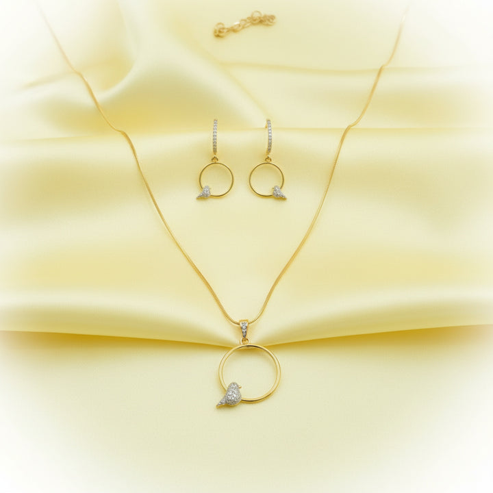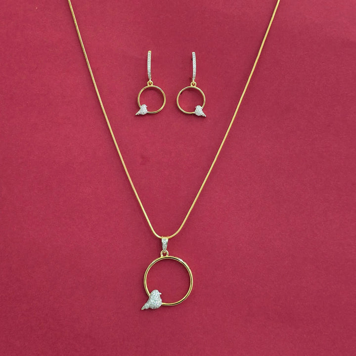 438852 Cubic Zirconia Classic Pendant Set With 2 Tone Plating