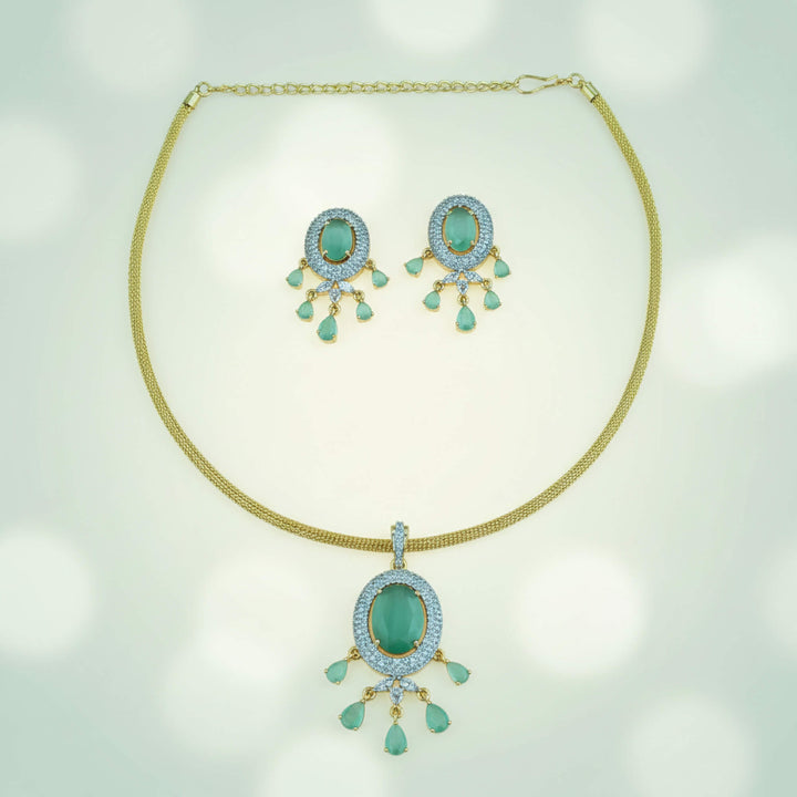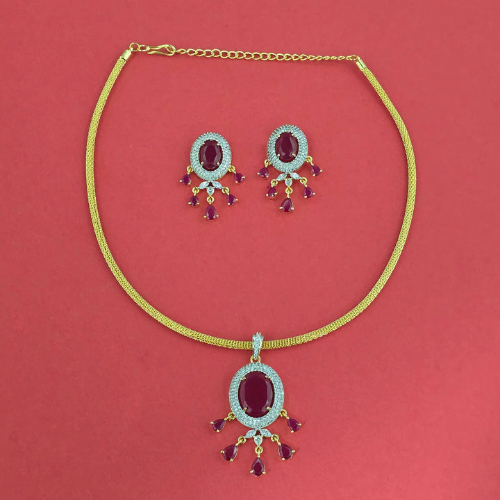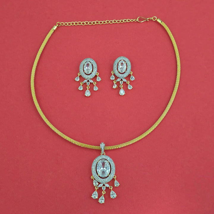 442360 Cubic Zirconia Classic Pendant Set With 2 Tone Plating