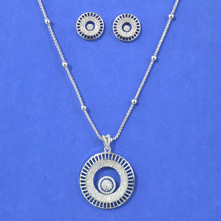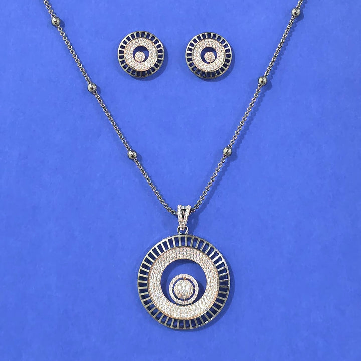 Weight: 20.0 Grams, Pendant Height = 47 mm || Width = 36 mm,Earring Height = 20 mm || Width = 20 mm,Chain - 16 Inch,Black Rose Plating,Rhodium Plating,American Diamond Pendant Set