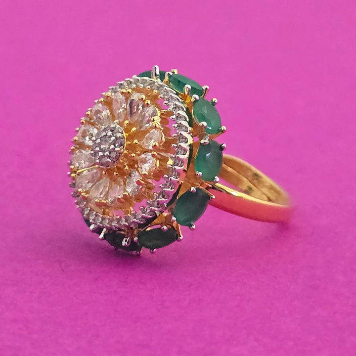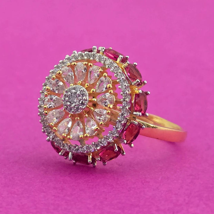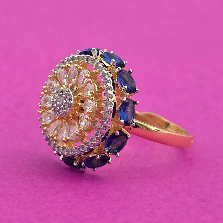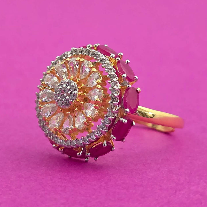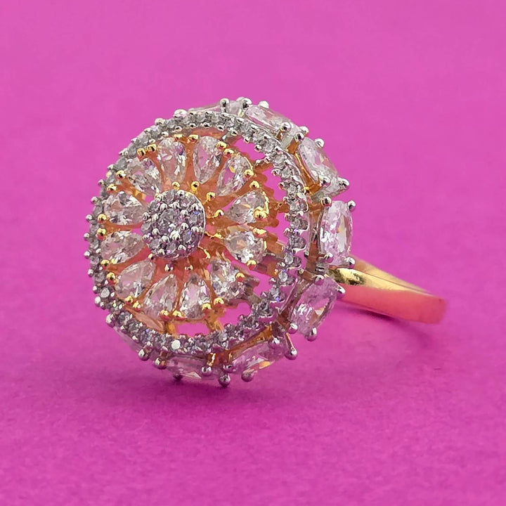 Weight: 5.0 Grams, Height = 19 mm || Width = 19 mm,Adjustable Ring,2 Tone Plating,American Diamond Ring