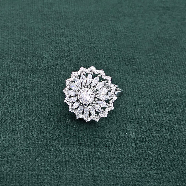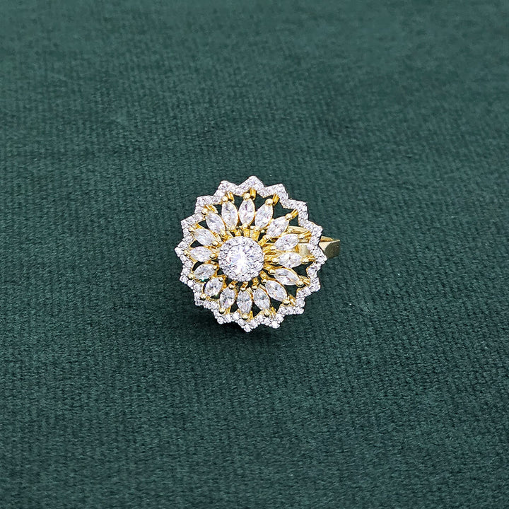 Weight: 6.0 Grams, Height = 20 mm || Width = 20 mm,Adjustable Ring,2 Tone Plating,Rhodium Plating,American Diamond Ring