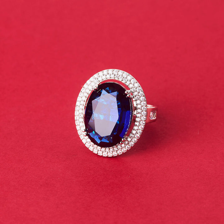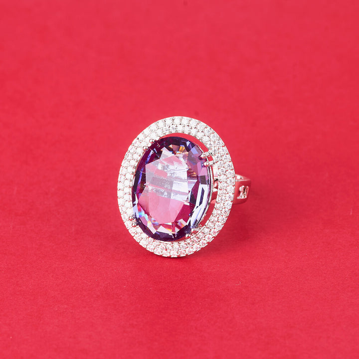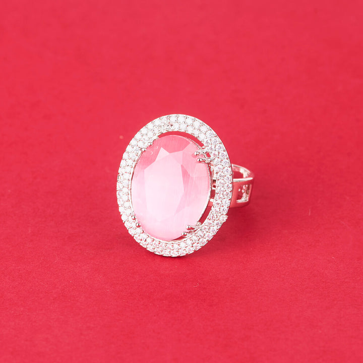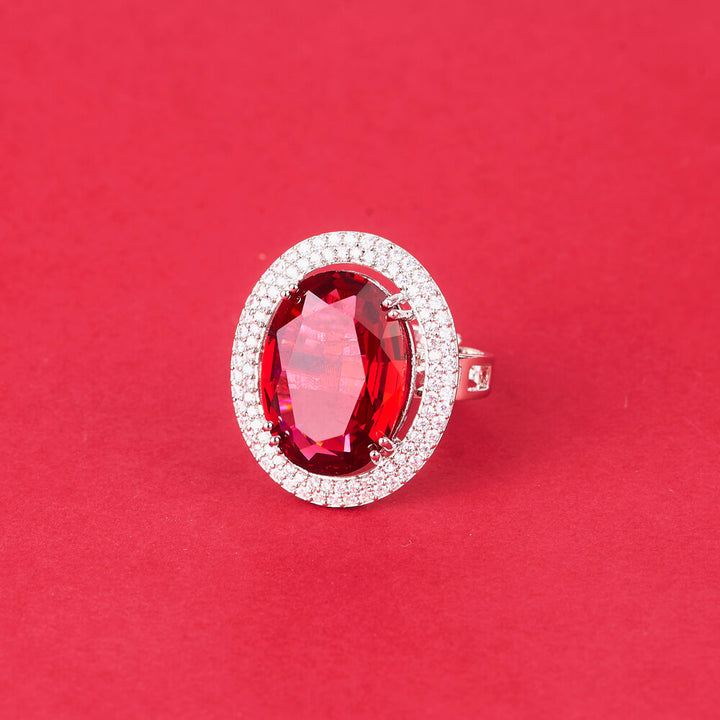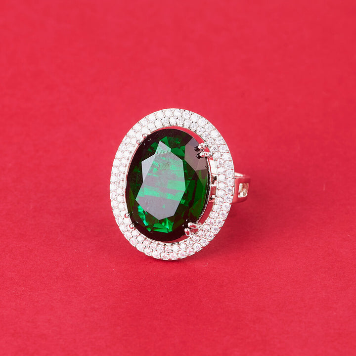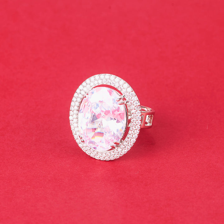 Weight: 7.0 Grams, Height = 24 mm || Width = 20 mm,Adjustable Ring,Rhodium Plating,American Diamond Ring