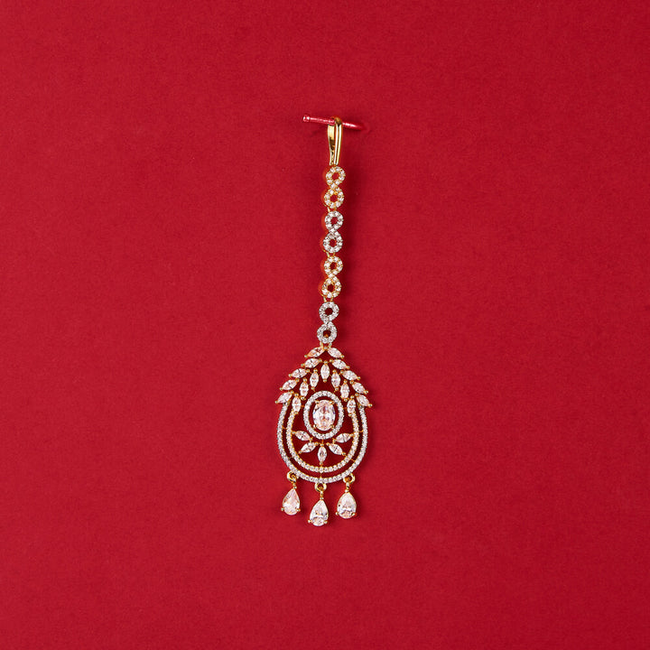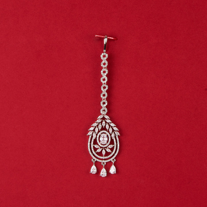 Weight: 10.0 Grams, Height = 95 mm || Width = 22 mm,Chand Style,2 Tone Plating,Rhodium Plating,American Diamond Maang Tikka
