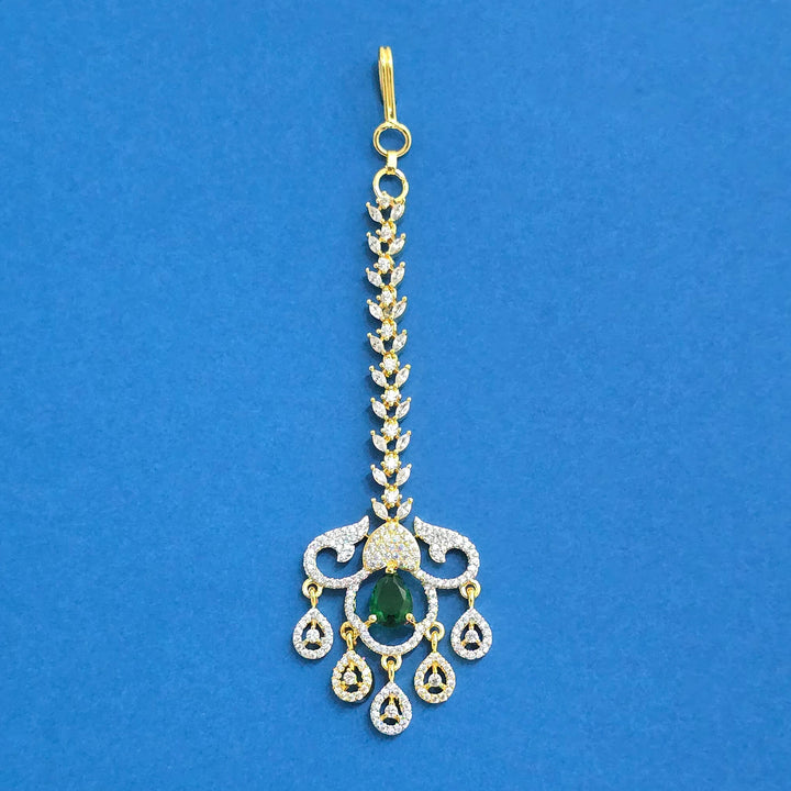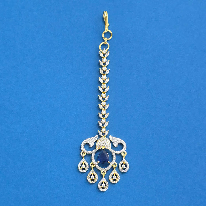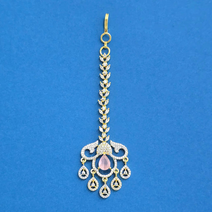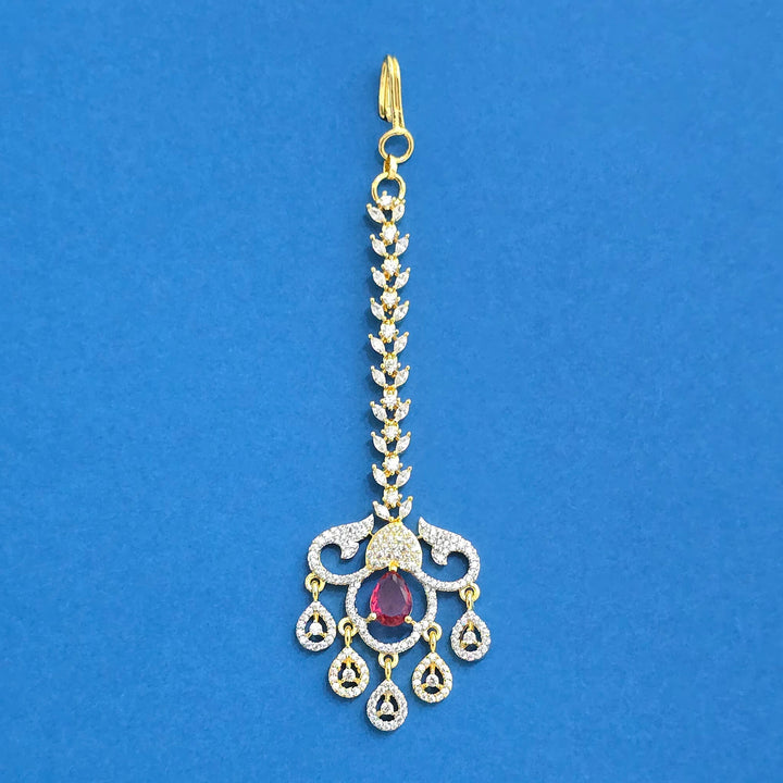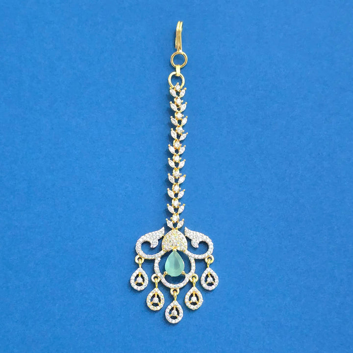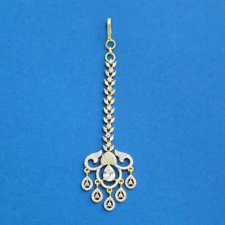 Weight: 9.0 Grams, Height = 99 mm || Width = 28 mm,Elegant Look,American Diamond Maang Tikka,2 Tone Plating