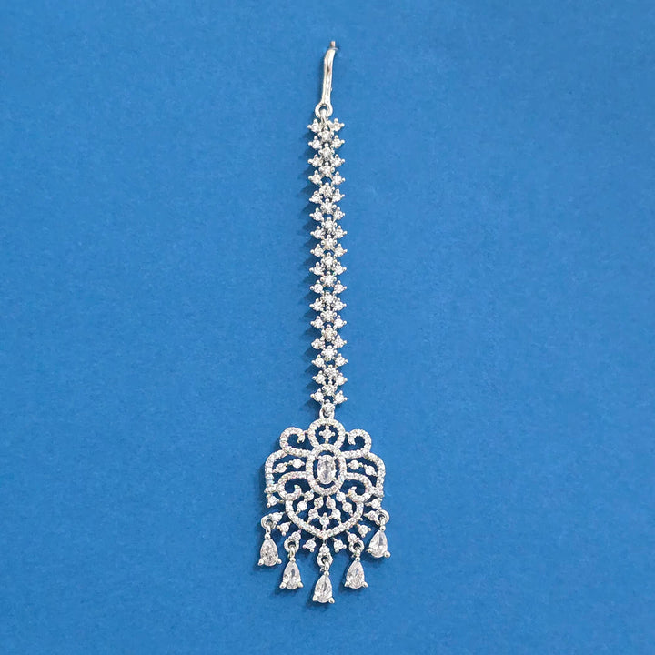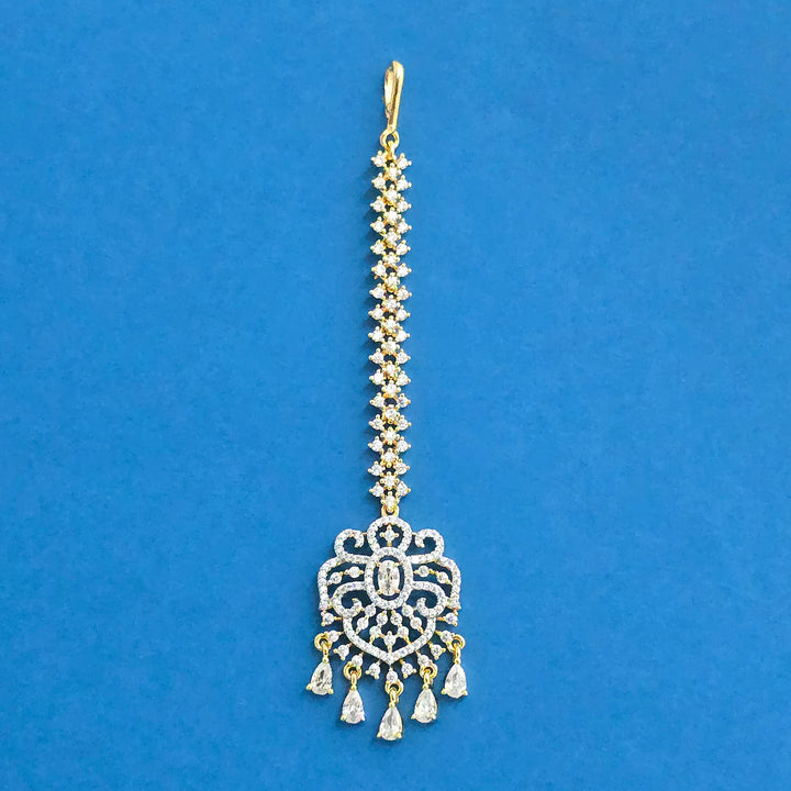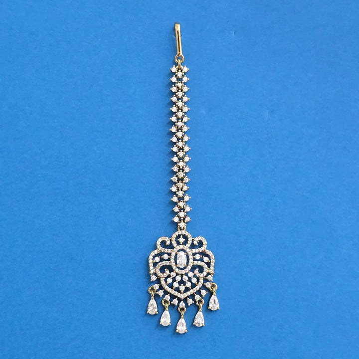 Weight: 9.0 Grams, Latest Design,Height = 100 mm || Width = 23 mm,Mehndi Plating,2 Tone Plating,Rhodium Plating,Cz Maang Tikka
