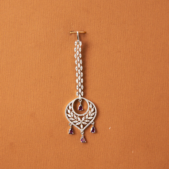 Weight: 10.0 Grams, Height = 100 mm || Width = 28 mm,Chand Style,American Diamond Maang Tikka