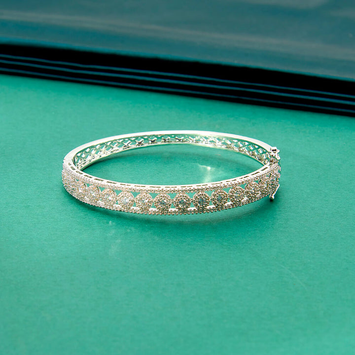 436690 Cubic Zirconia Delicate Kada With 2 Tone Rhodium Plating