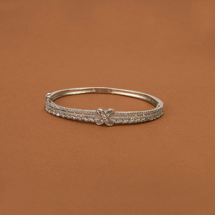 436997 Cubic Zirconia Delicate Kada With 2 Tone Rhodium Plating