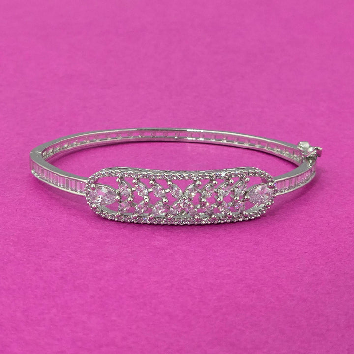 Weight: 12.0 Grams, Height = 47 mm || Width = 57 mm,Openable Kada,2 Tone Plating,Rhodium Plating,American Diamond Kada