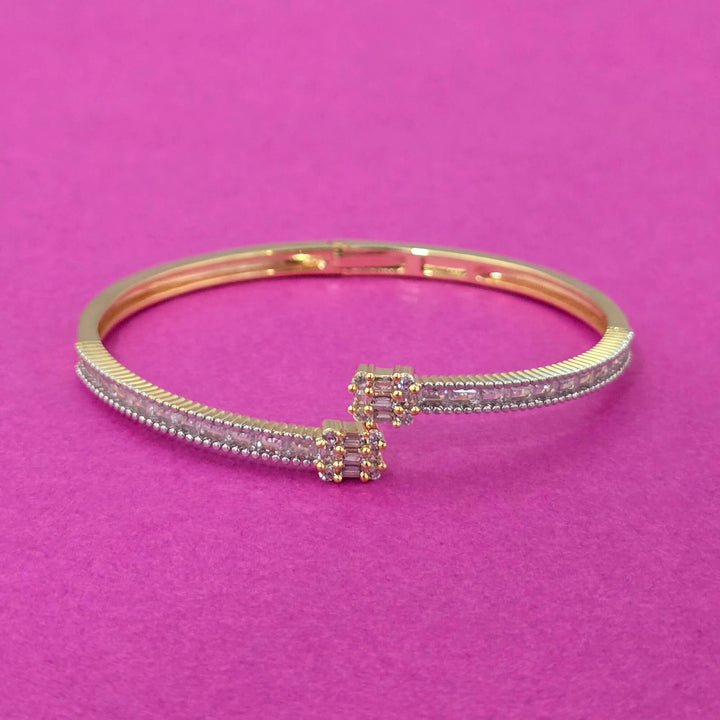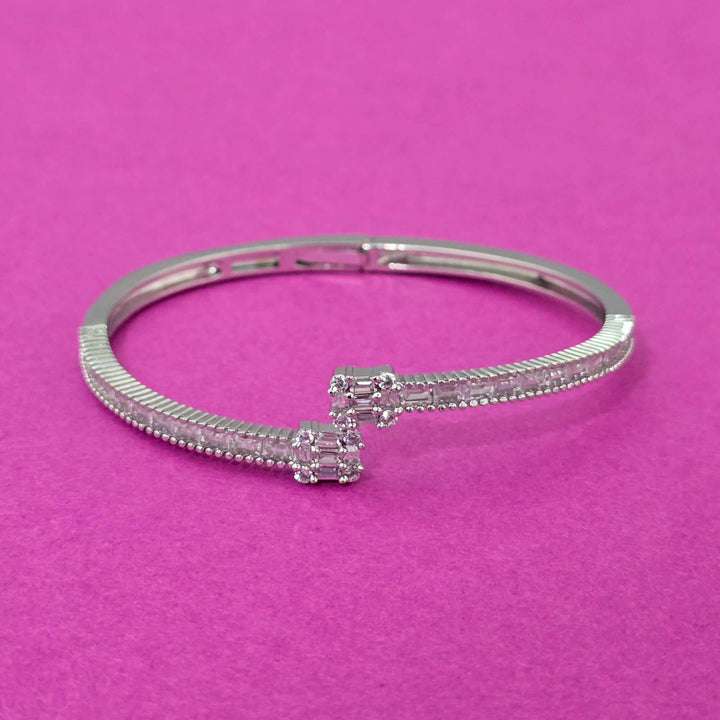 Weight: 13.0 Grams, Height = 46 mm || Width = 56 mm,Openable Kada,2 Tone Plating,Rhodium Plating,American Diamond Kada