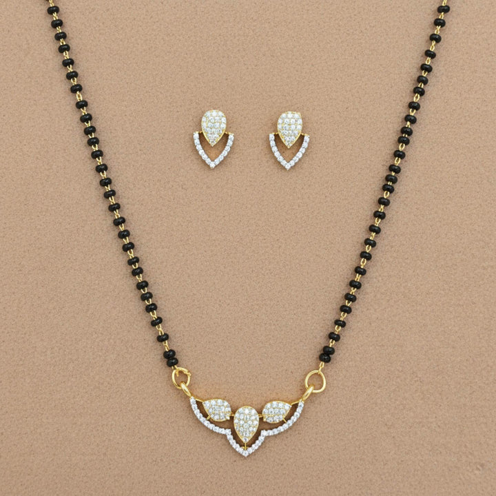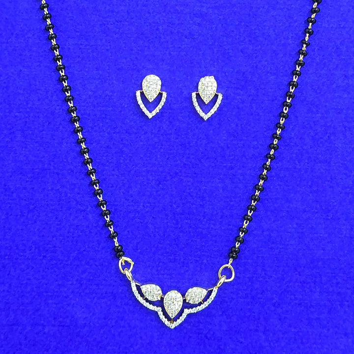 Weight: 9.0 Grams, Pendant Height = 12 mm || Width = 20 mm,Earring Height = 12 mm || Width = 9 mm,Chain - 18 Inch,2 Tone Plating,Rhodium Plating,American Diamond Mangal Sutra