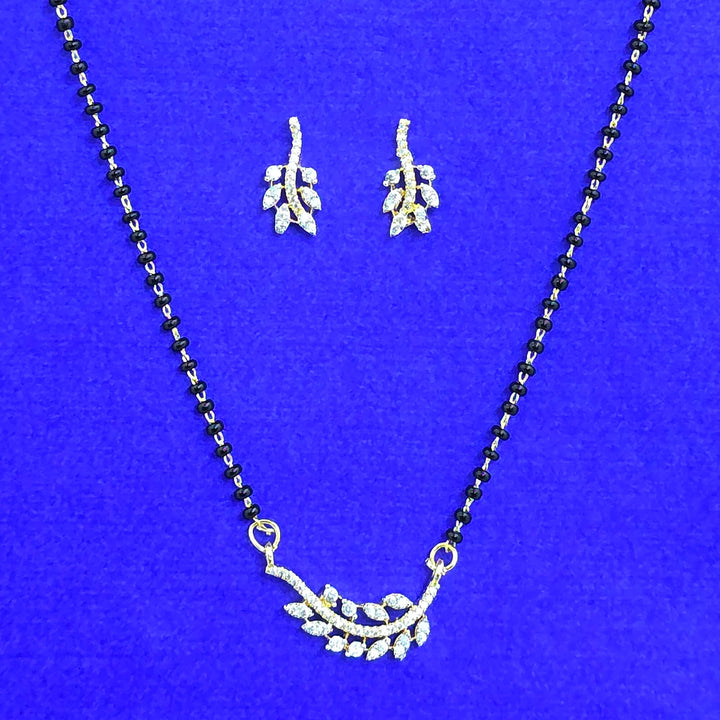 Weight: 9.0 Grams, Pendant Height = 24 mm || Width = 10 mm,Earring Height = 16 mm || Width = 9 mm,Chain - 18 Inch,2 Tone Plating,Rhodium Plating,American Diamond Mangal Sutra