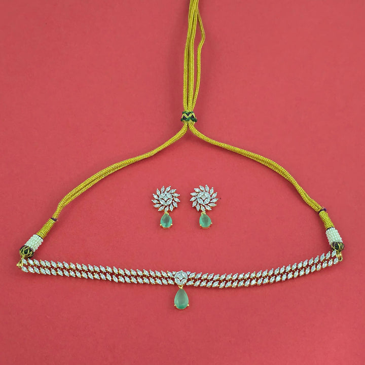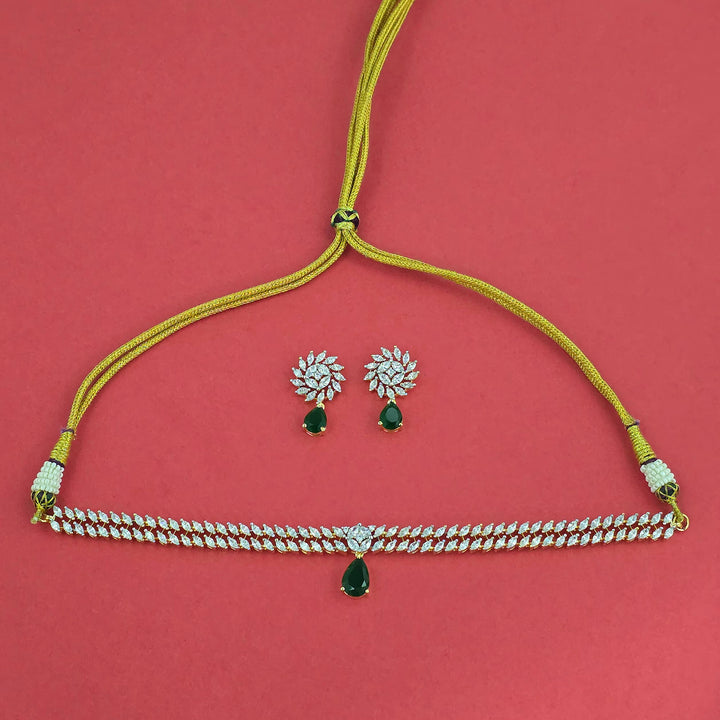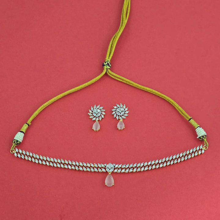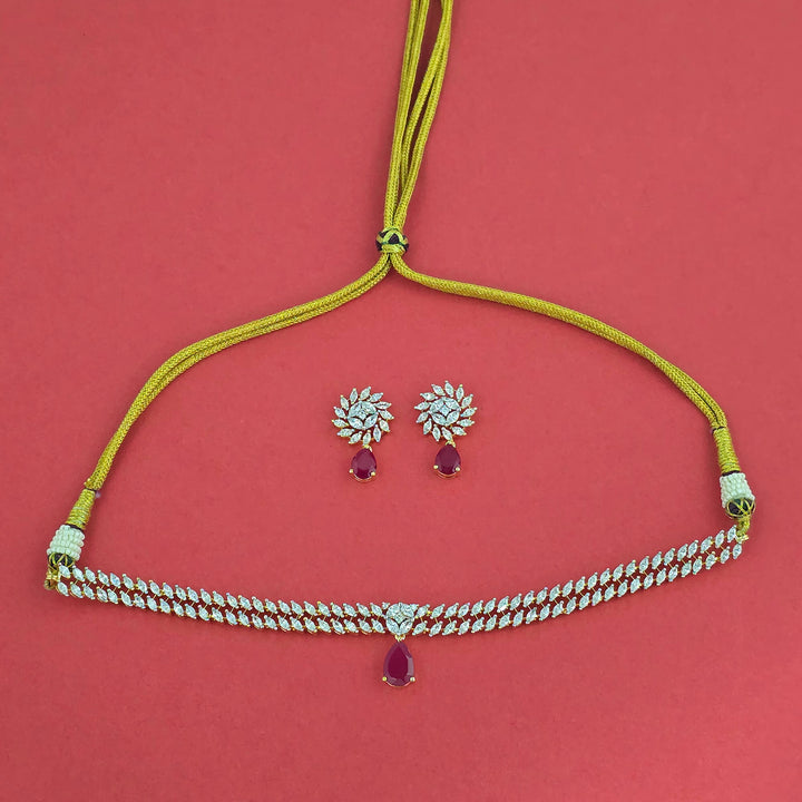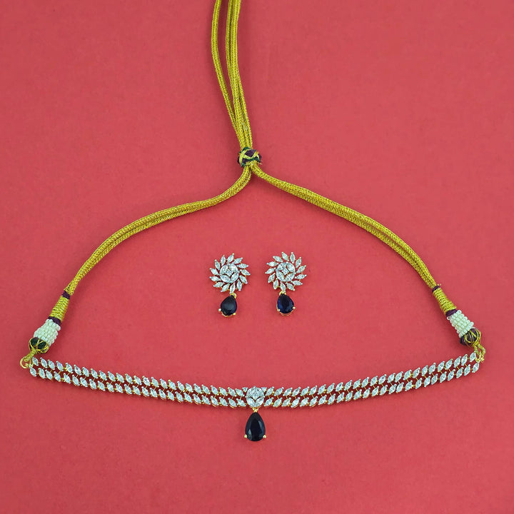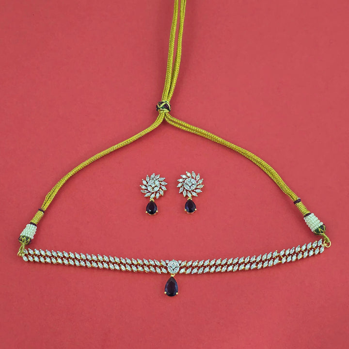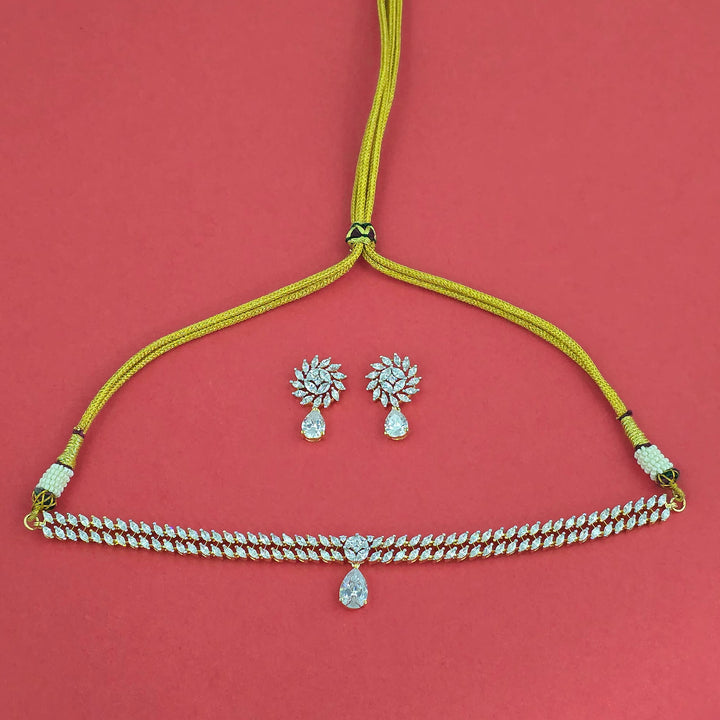 Weight: 37.0 Grams, Earring Height = 28 mm || Width = 16 mm,Regular Size And Adjustable,Choker Necklace,2 Tone Plating,American Diamond Necklace Set