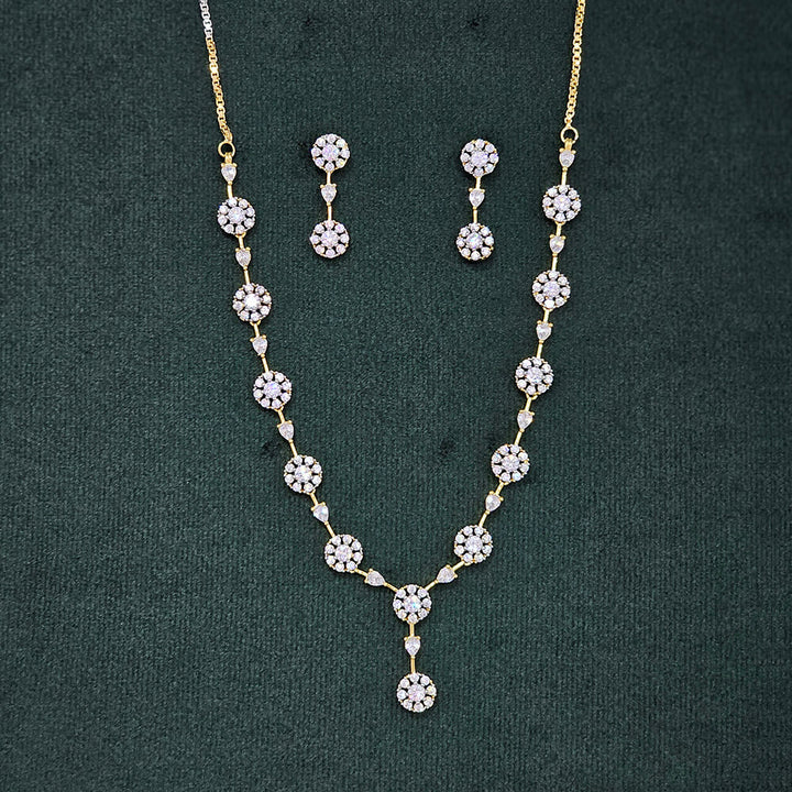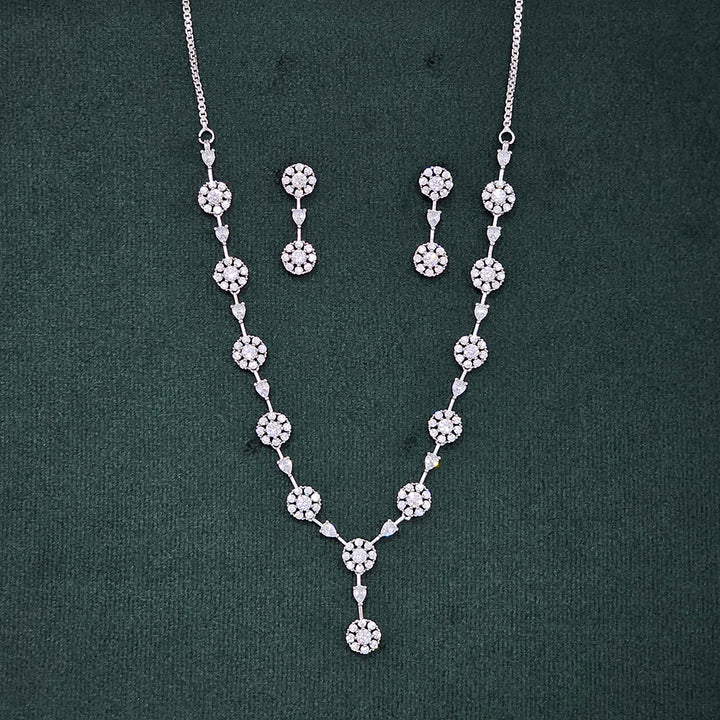437545 Cubic Zirconia Delicate Necklace Set With 2 Tone Rhodium Plating