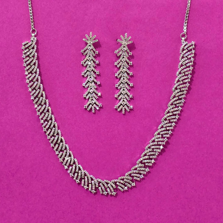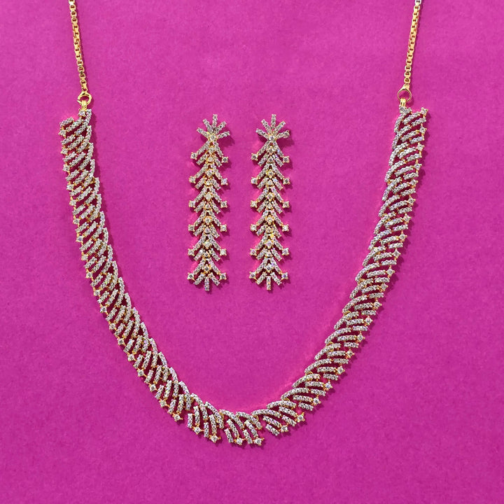 439509 Cubic Zirconia Delicate Necklace Set With Rhodium 2 Tone Plating