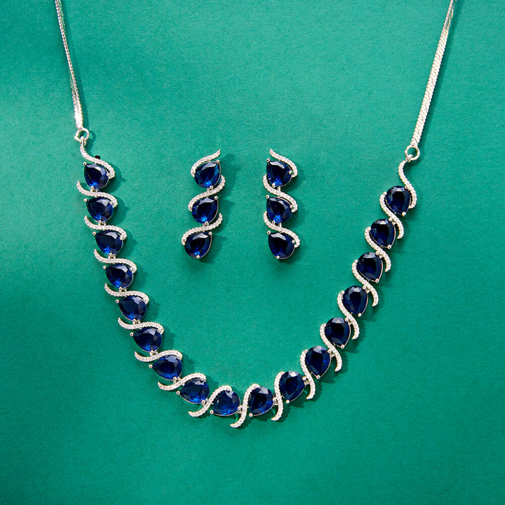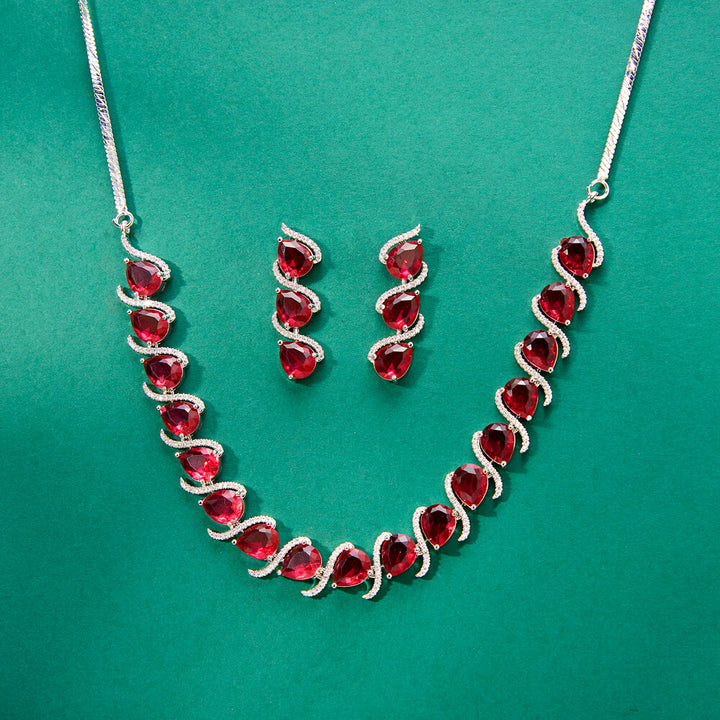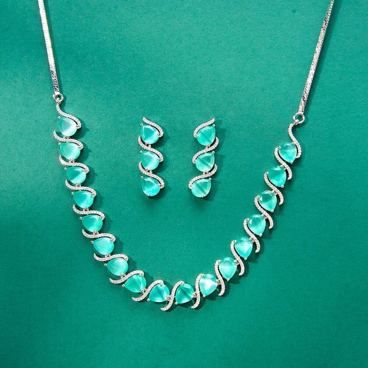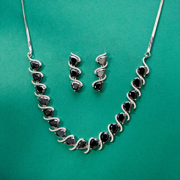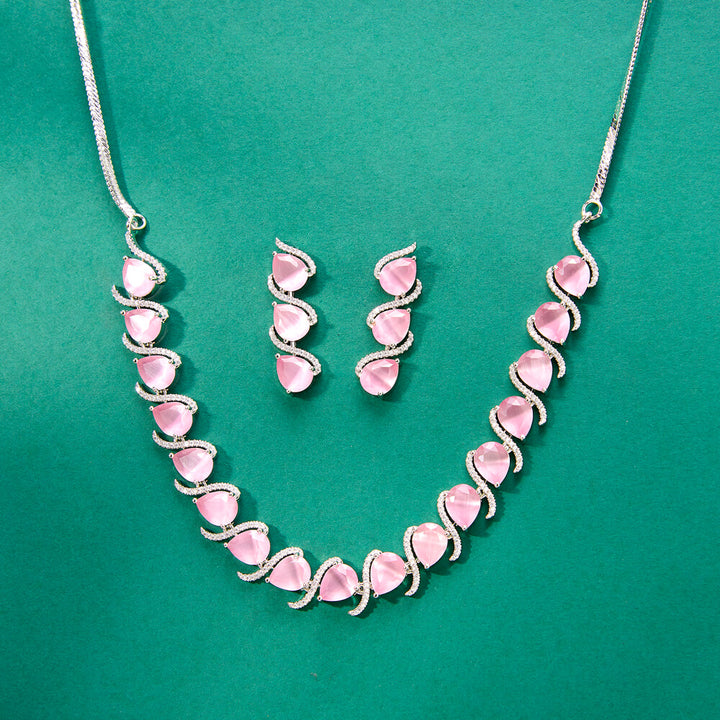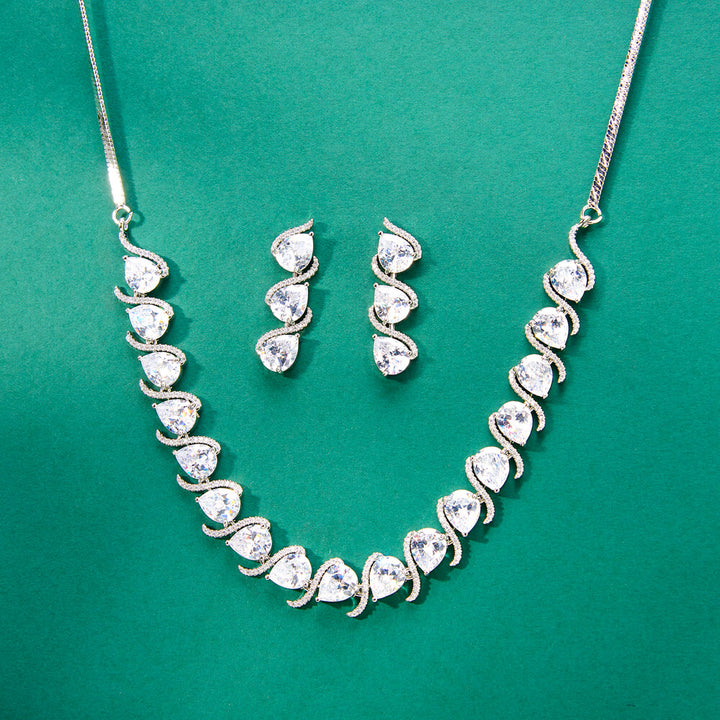 436325 Cubic Zirconia Delicate Necklace Set With Rhodium Plating