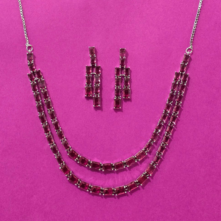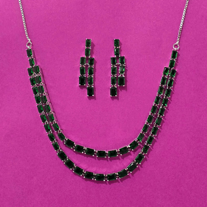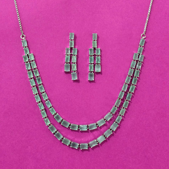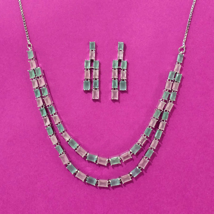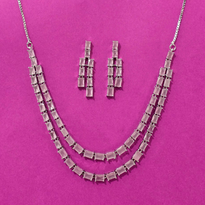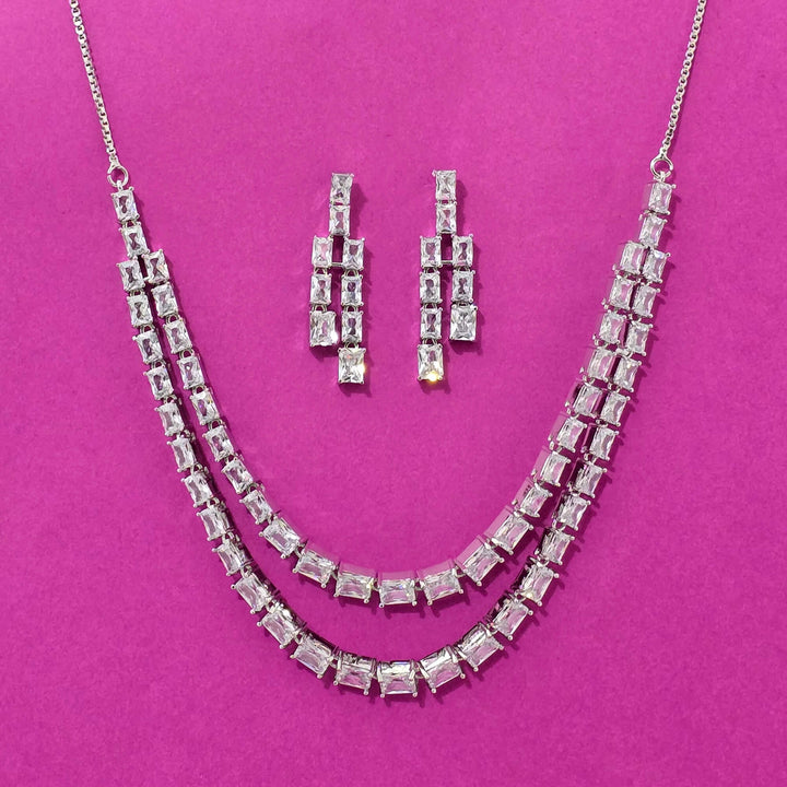 439826 Cubic Zirconia Delicate Necklace Set With Rhodium Plating