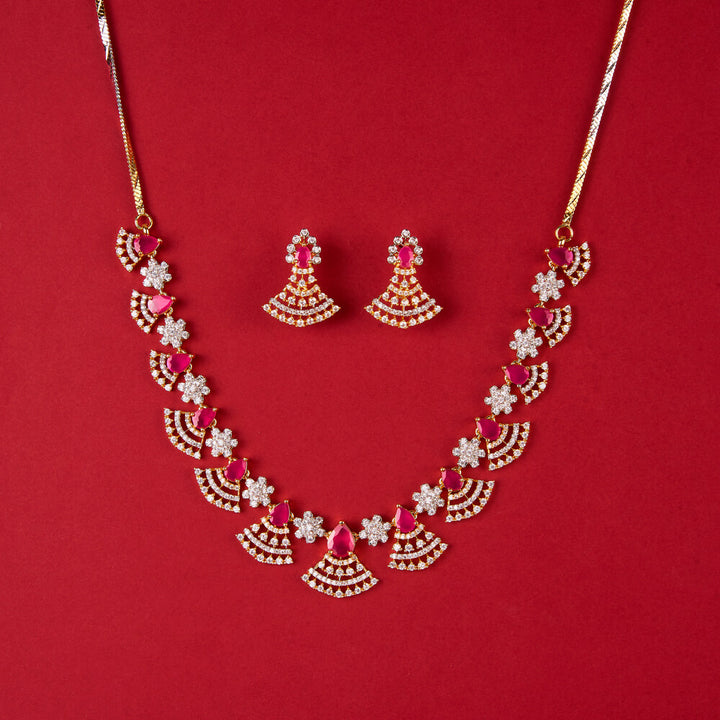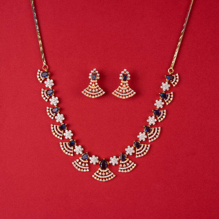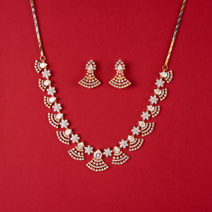 Weight: 37.0 Grams, Earring Height = 25 mm || Width = 20 mm,Regular Size And Adjustable,Latest Design,2 Tone Plating,American Diamond Necklace Set