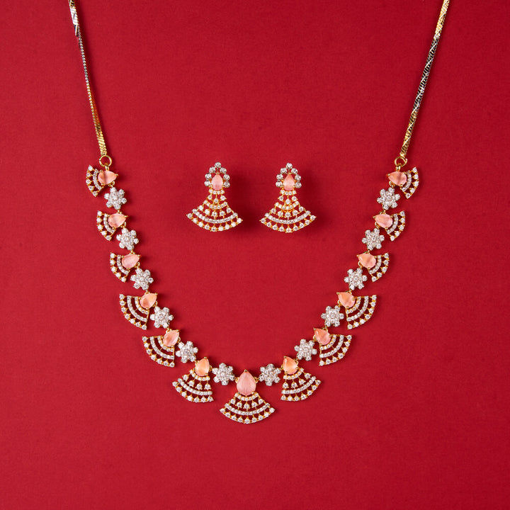 437899 Cubic Zirconia Delicate Necklace With 2 Tone Plating