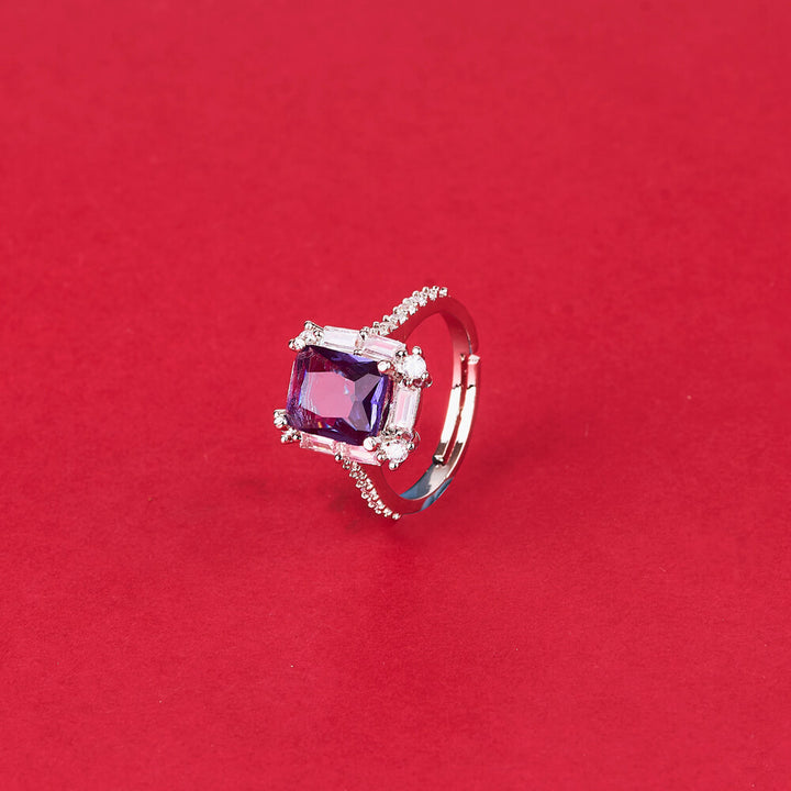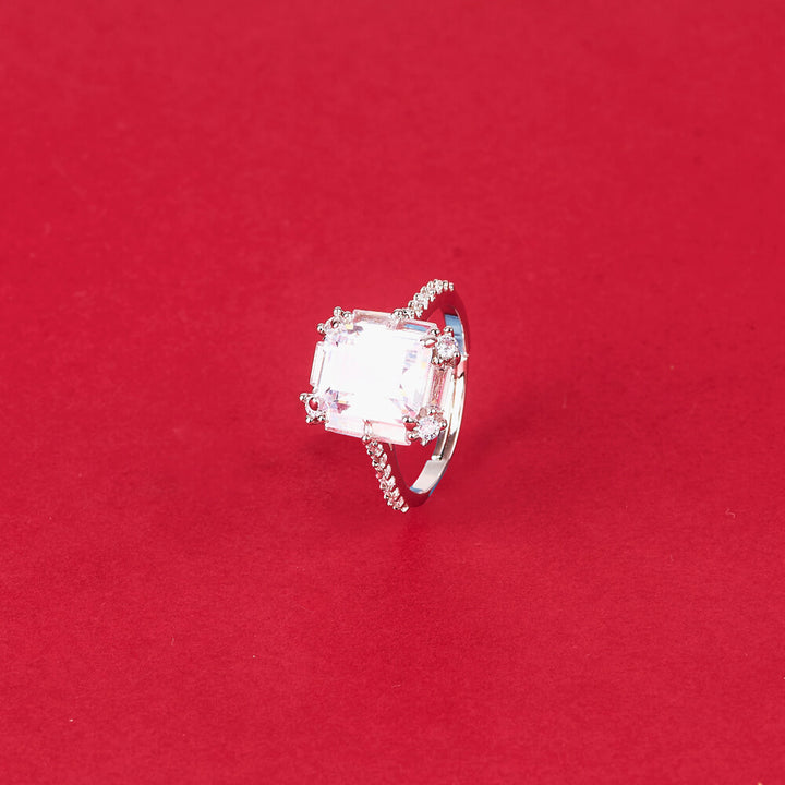 Weight: 4.0 Grams, Height = 15 mm || Width = 11 mm,Adjustable Ring,Rhodium Plating,American Diamond Ring