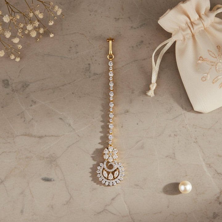 Weight: 7.0 Grams, Height = 95 mm || Width = 20 mm,Handmade Design,American Diamond Maang Tikka