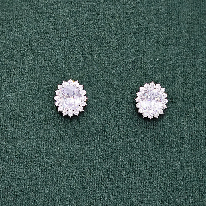 Weight: 7.0 Grams, Height = 18 mm || Width = 15 mm,Stud Earring,Rhodium Plating,American Diamond Earring