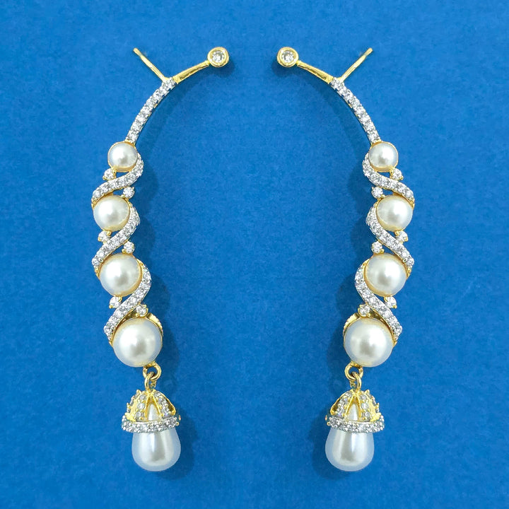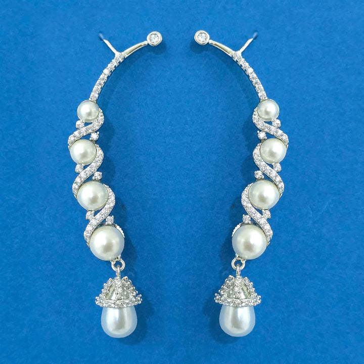 Weight: 12.0 Grams, Height = 73 mm || Width = 9 mm,Trendy Look,American Diamond Earring,2 Tone Plating,Rhodium Plating