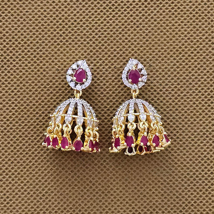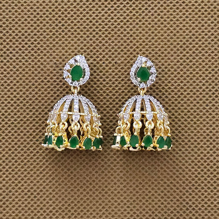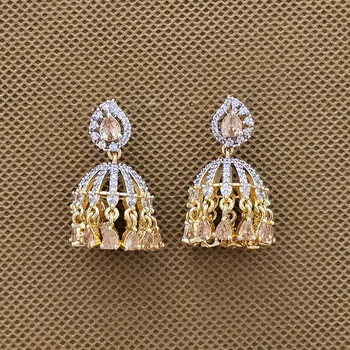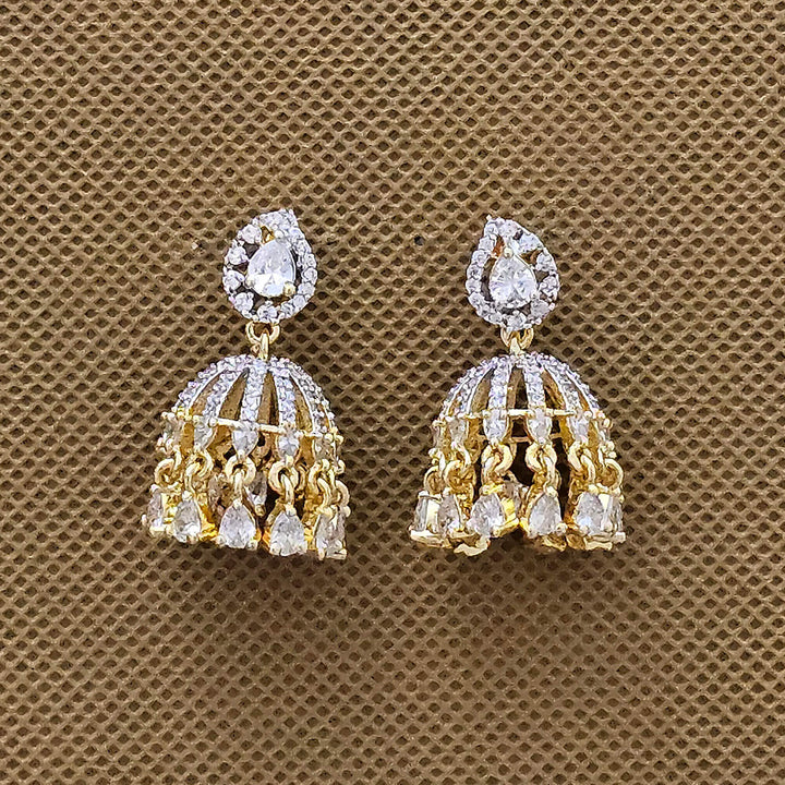 438695 Cubic Zirconia Jhumki With 2 Tone Plating