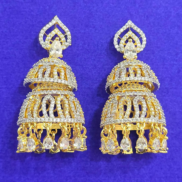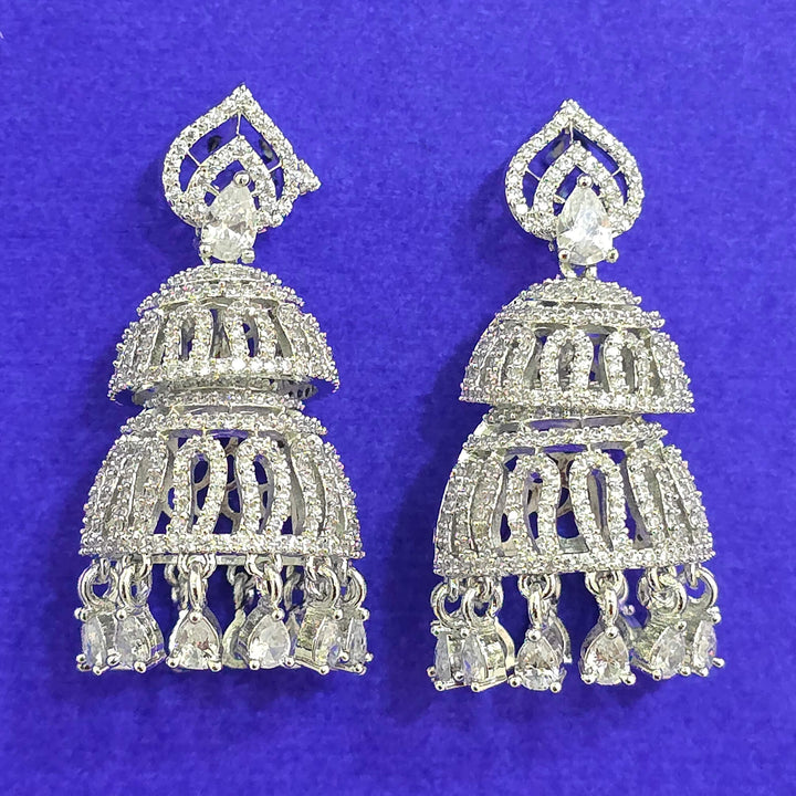 441448 Cubic Zirconia Jhumki With 2 Tone Rhodium Plating
