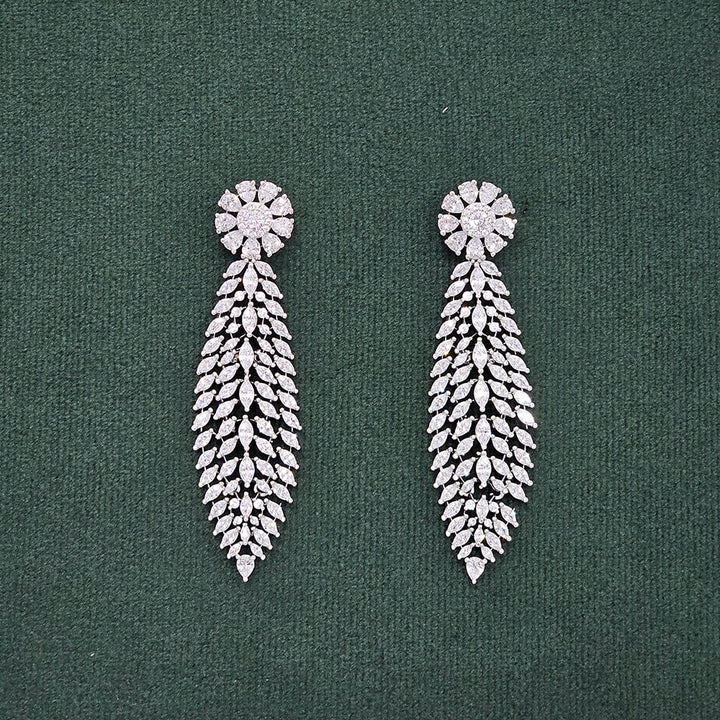 437529 Cubic Zirconia Long Earring With 2 Tone Rhodium Plating