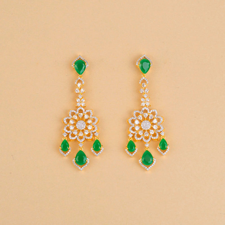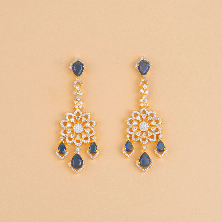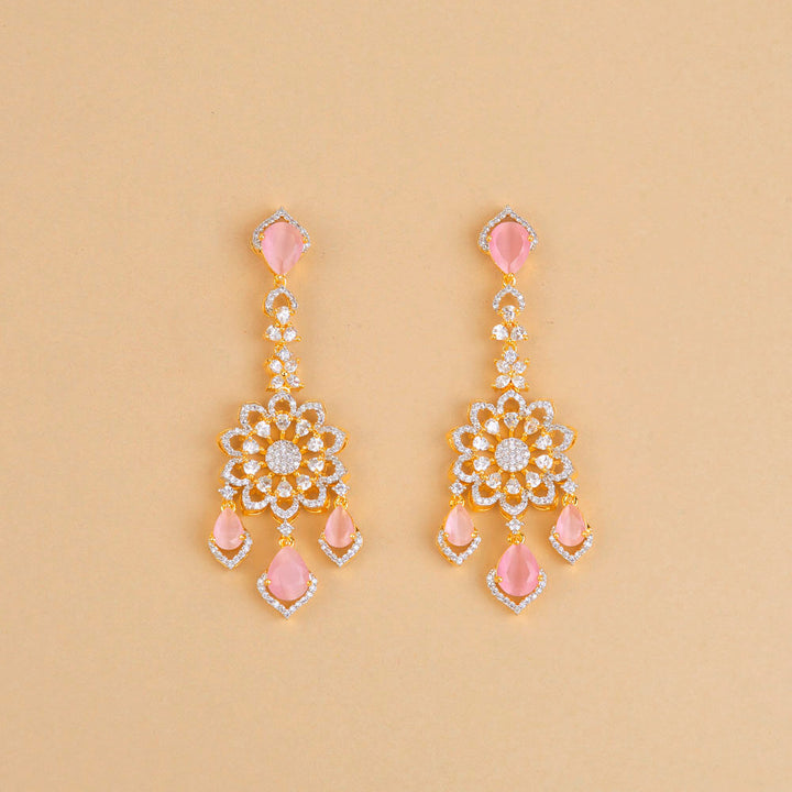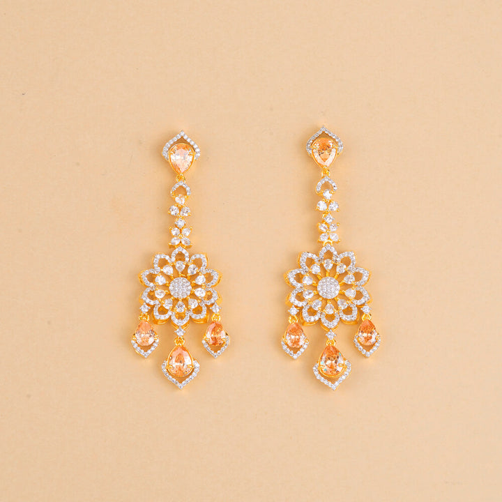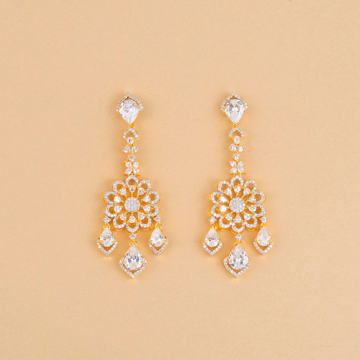 437229 Cubic Zirconia Long Earring With Gold Plating