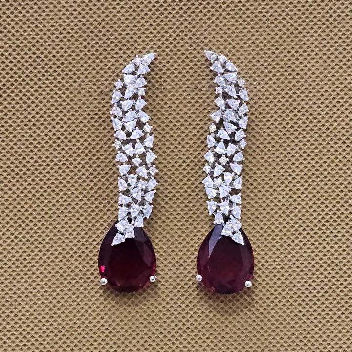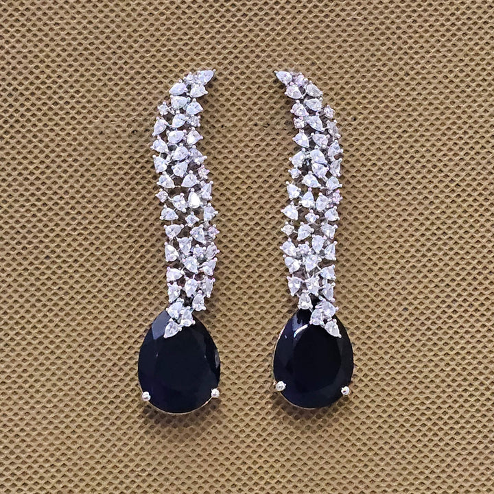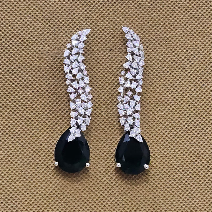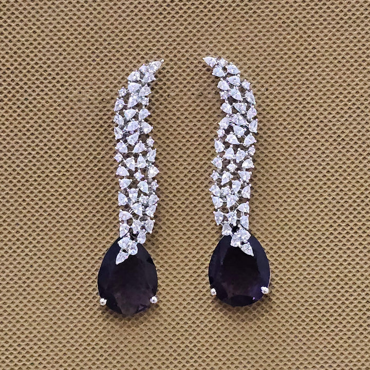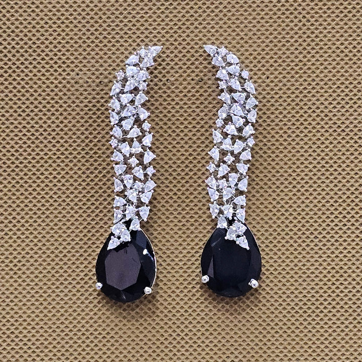 Weight: 19.0 Grams, Height = 62 mm || Width = 15 mm,Latest Design,Rhodium Plating,American Diamond Earring