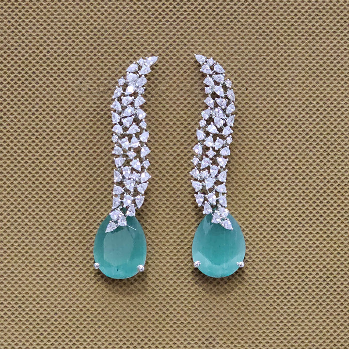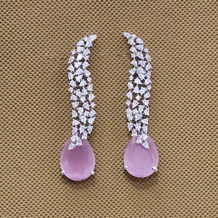 438679 Cubic Zirconia Long Earring With Rhodium Plating
