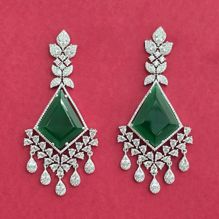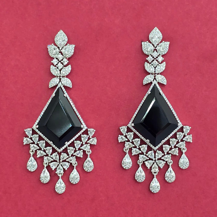 438790 Cubic Zirconia Long Earring With Rhodium Plating