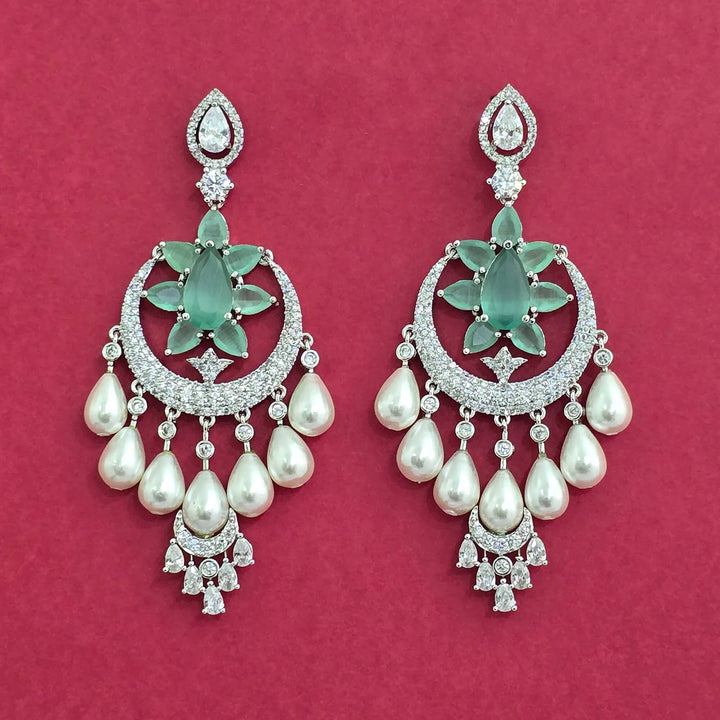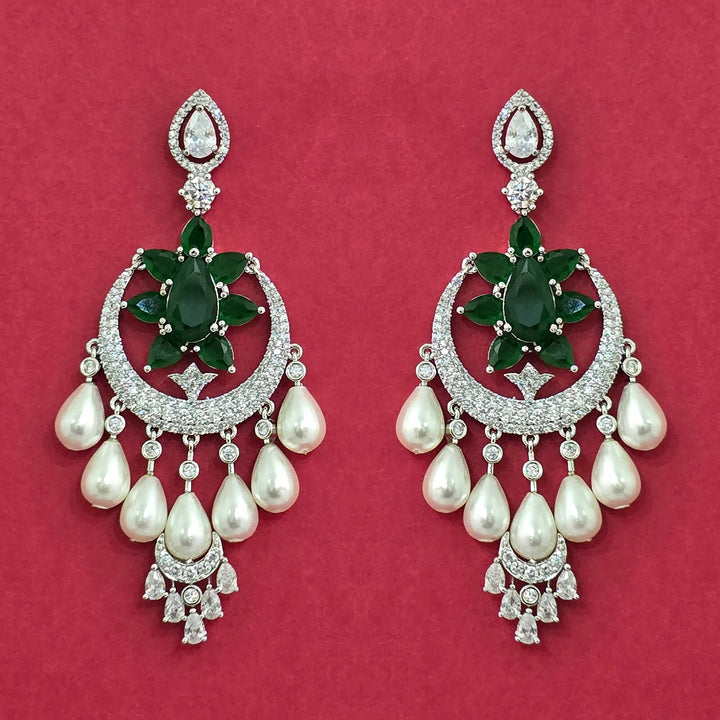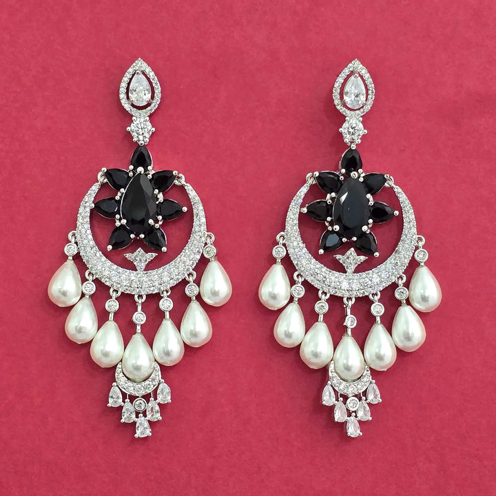 438793 Cubic Zirconia Long Earring With Rhodium Plating