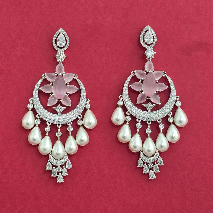 Weight: 43.0 Grams, Height = 86 mm || Width = 44 mm,Pearl Earring,American Diamond Earring